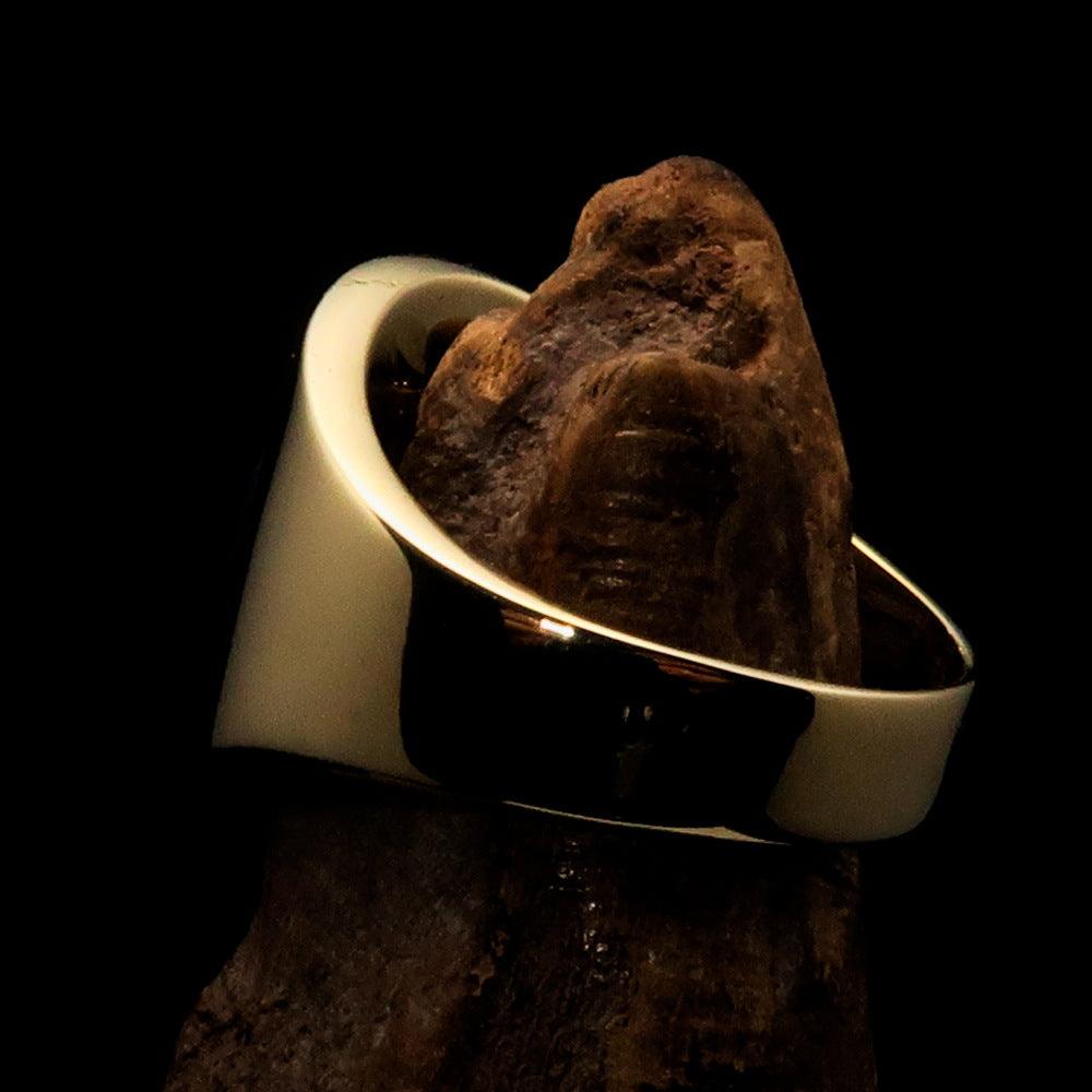 The ring has a dimension of 19 mm along the finger, ensuring a comfortable fit for most wearers. We understand that finding the perfect size can be challenging, which is why we offer 12 different sizes to choose from. Additionally, we provide a custom size option, allowing you to order half or even quarter sizes. Simply add a note during checkout to specify your desired size, and we will craft the ring to your specifications.