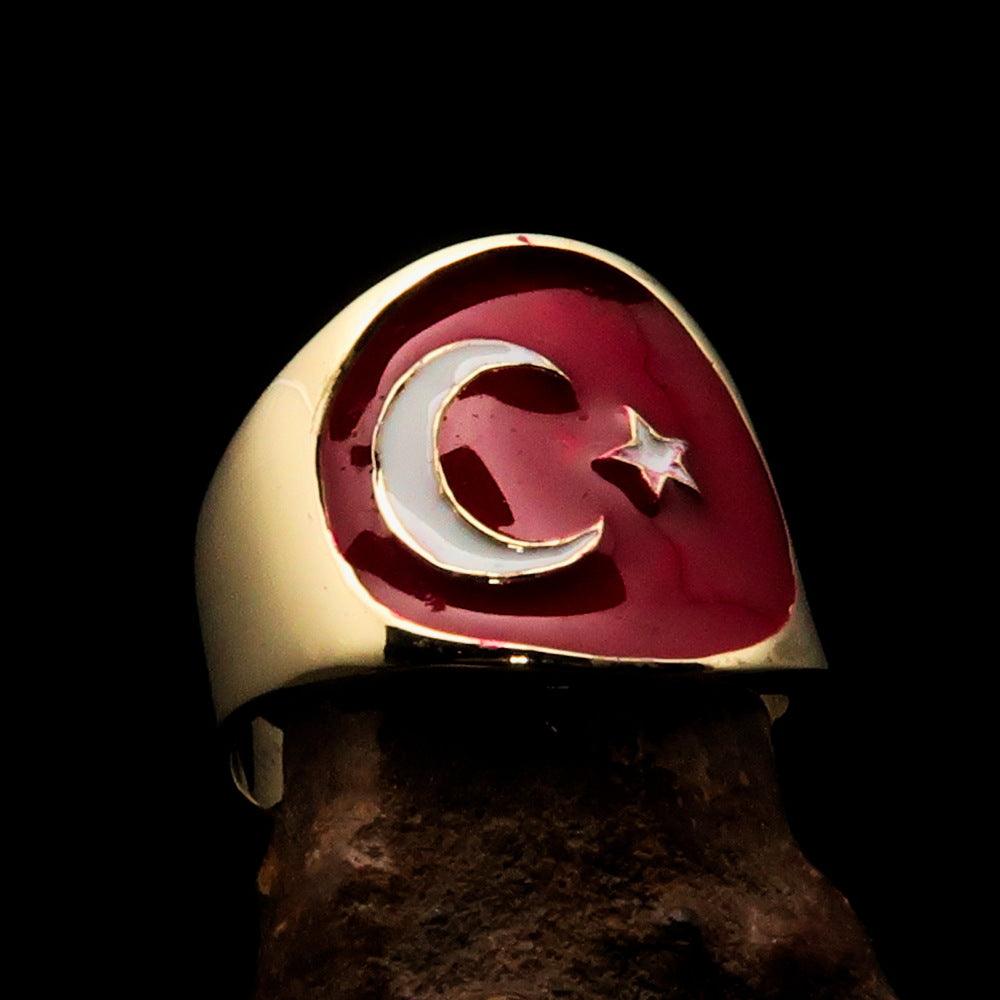 Introducing the Perfectly Crafted Men's National Flag Ring Turkey, a stunning piece of jewelry that showcases your pride and style. Made from solid brass, this ring features a high polished finish that enhances its beauty and durability. The vibrant enamel detailing brings the national flag of Turkey to life, making it a perfect accessory for any occasion.