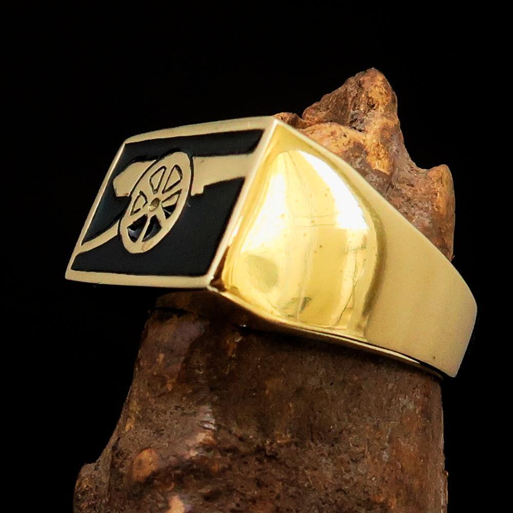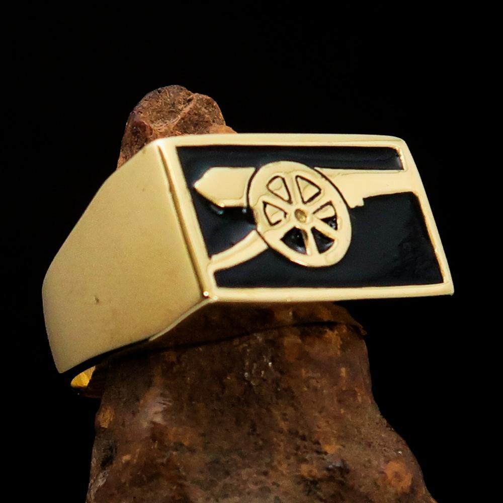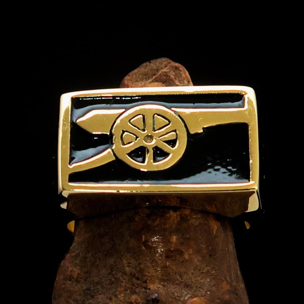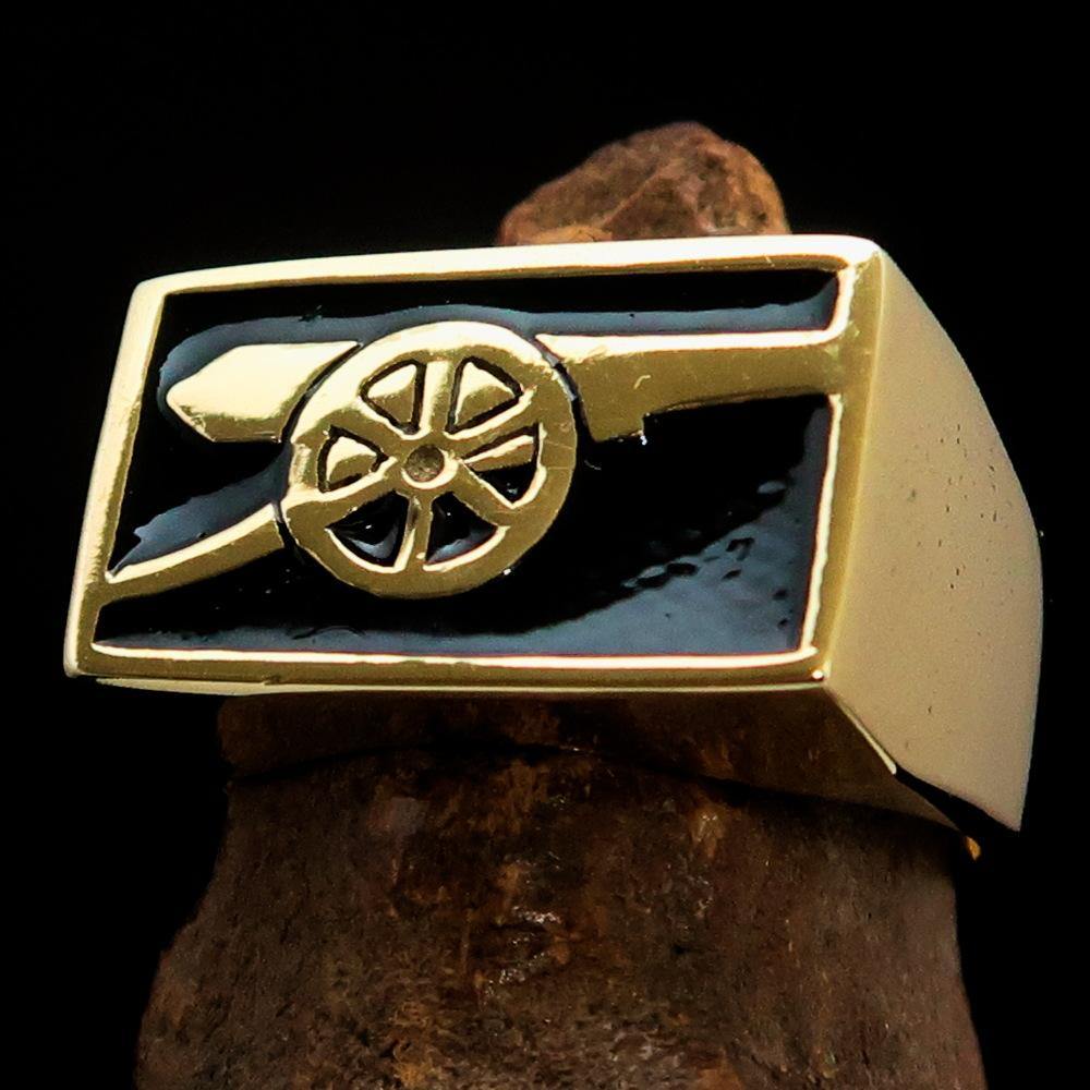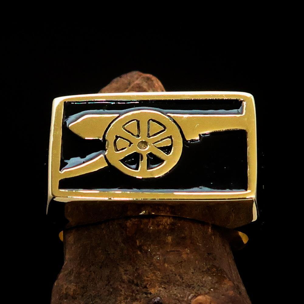 Introducing the exquisite Men's Naval Cannon Ring, a stunning piece of jewelry that combines elegance and strength. Crafted from solid brass, this ring features a high-polished finish complemented by a striking black enamel coating. The unique design is inspired by naval history, making it a perfect accessory for those who appreciate maritime themes and craftsmanship.