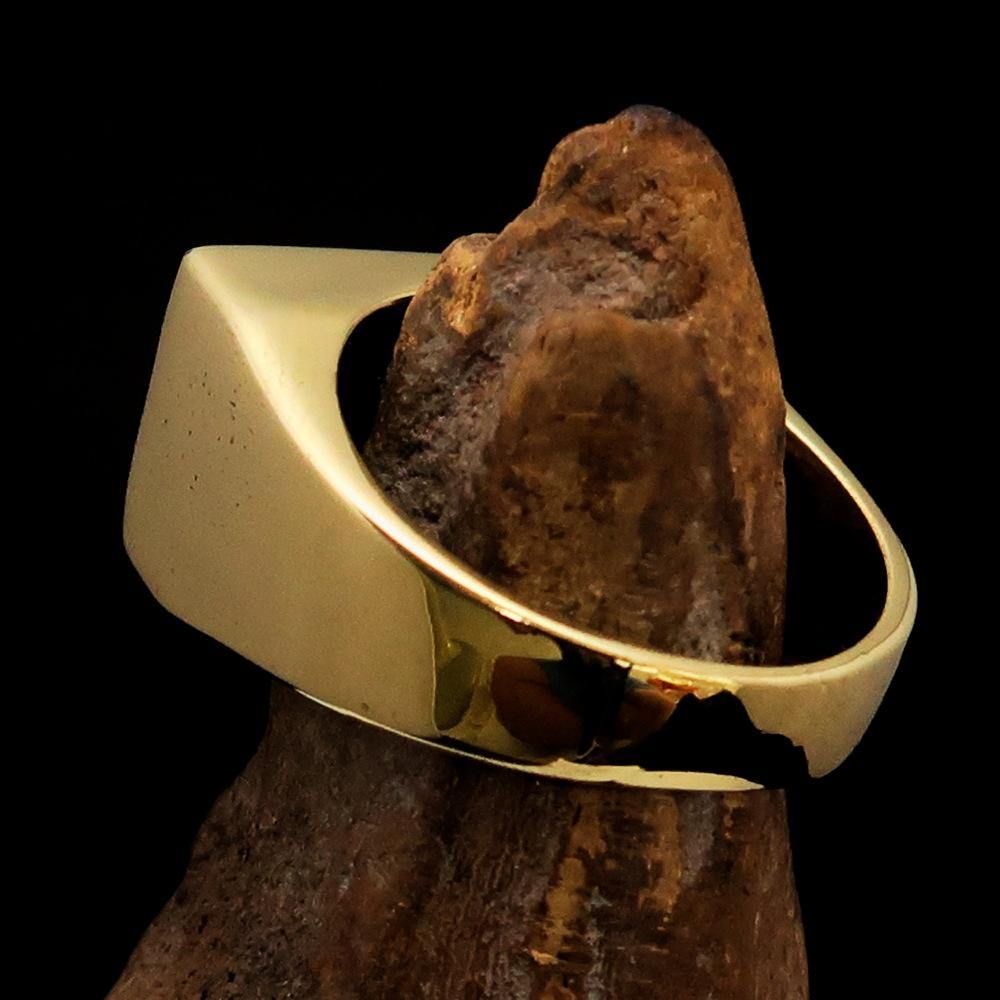 This ring is not just a piece of jewelry; it is a statement of quality and craftsmanship. The solid brass material ensures durability and longevity, while the high-polished finish adds a touch of sophistication. The black enamel detailing enhances the overall aesthetic, making it suitable for both casual and formal occasions.