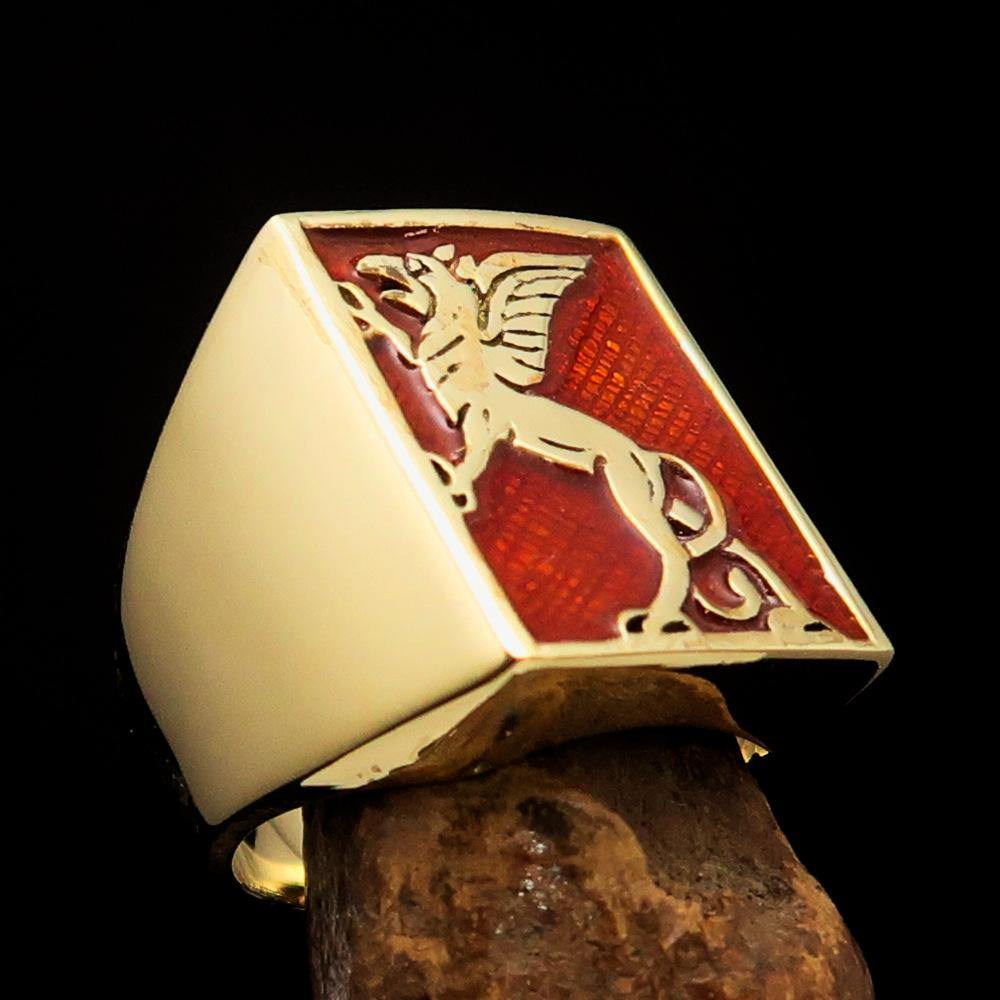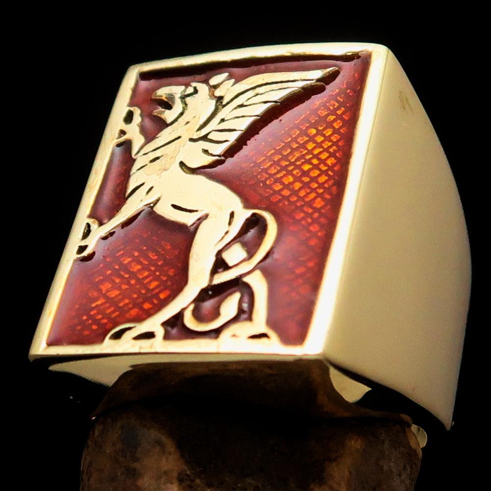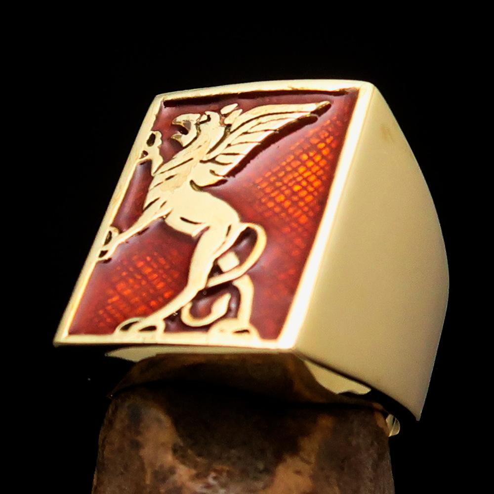 The Men's Orange Griffin Ring Griffon is an exquisite piece of jewelry that combines artistry and craftsmanship. Made from solid brass, this ring is designed to be a standout accessory in any man's collection. Its high polished finish not only enhances its aesthetic appeal but also ensures longevity, making it a worthy investment for those who appreciate fine jewelry.