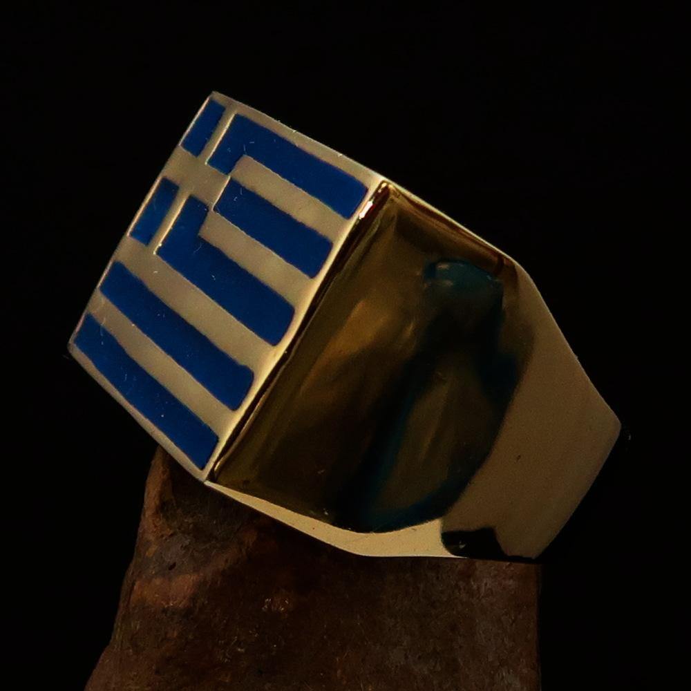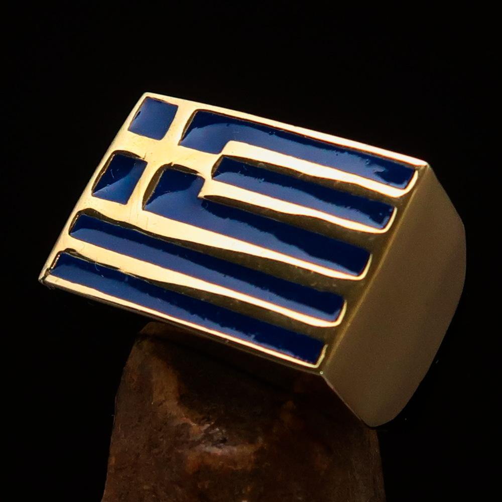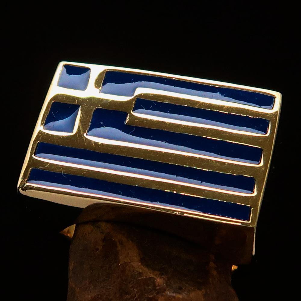 Introducing the Perfectly Crafted Men's Ring featuring the Flag of Greece, a stunning piece of jewelry that combines elegance with cultural pride. Made from solid brass, this ring is designed to last while showcasing the beautiful colors of the Greek flag. The high-polished finish and vibrant blue enamel make it a standout accessory for any occasion.