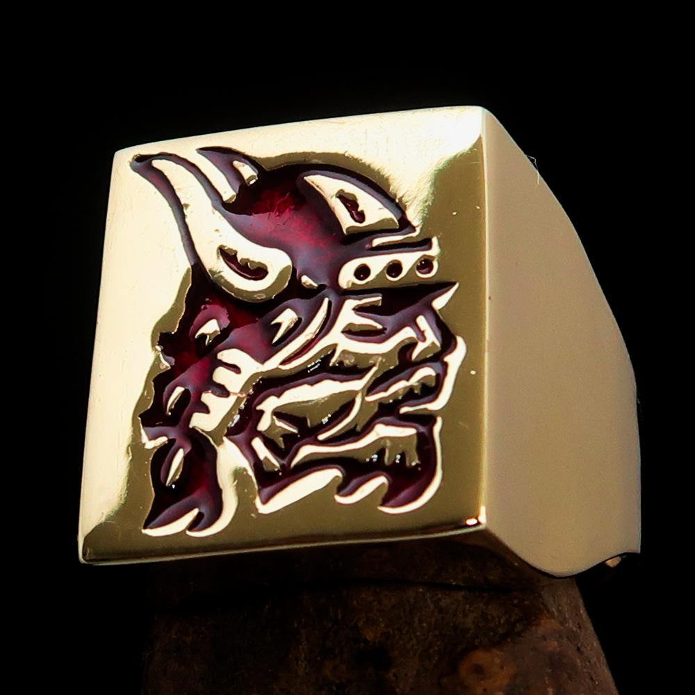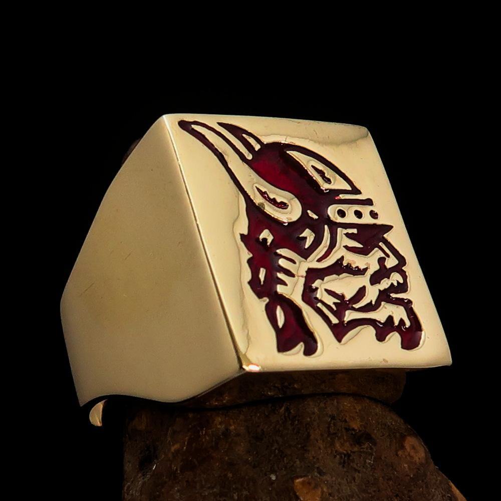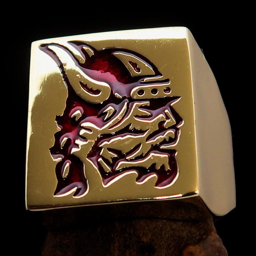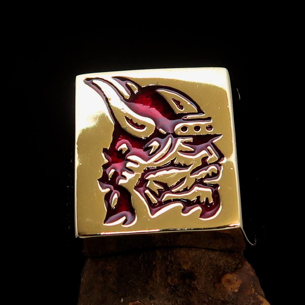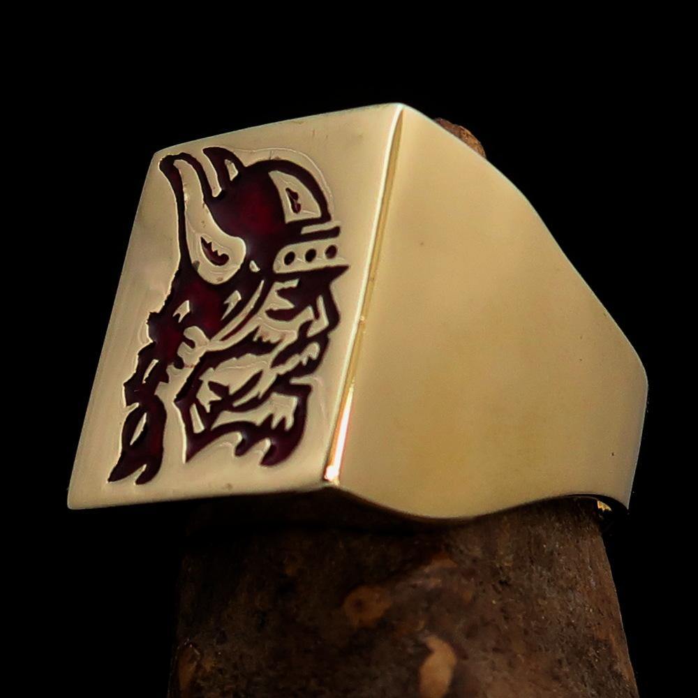 Introducing the Perfectly Crafted Men's Ring Viking Warrior Red, a stunning piece of jewelry that combines strength and elegance. Made from solid brass, this ring is designed to withstand the test of time while providing a bold statement piece for any occasion. The high-polished finish enhances its beauty, while the striking red enamel adds a unique touch that sets it apart from ordinary rings.