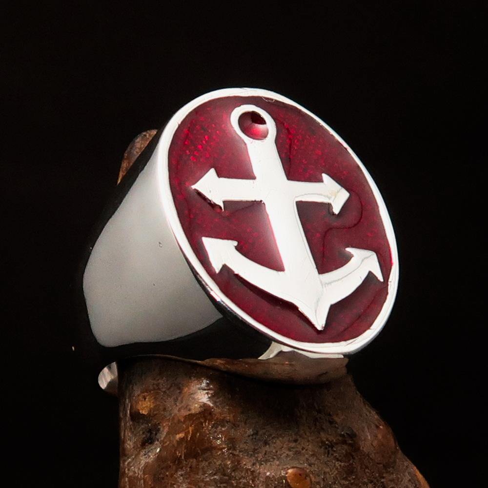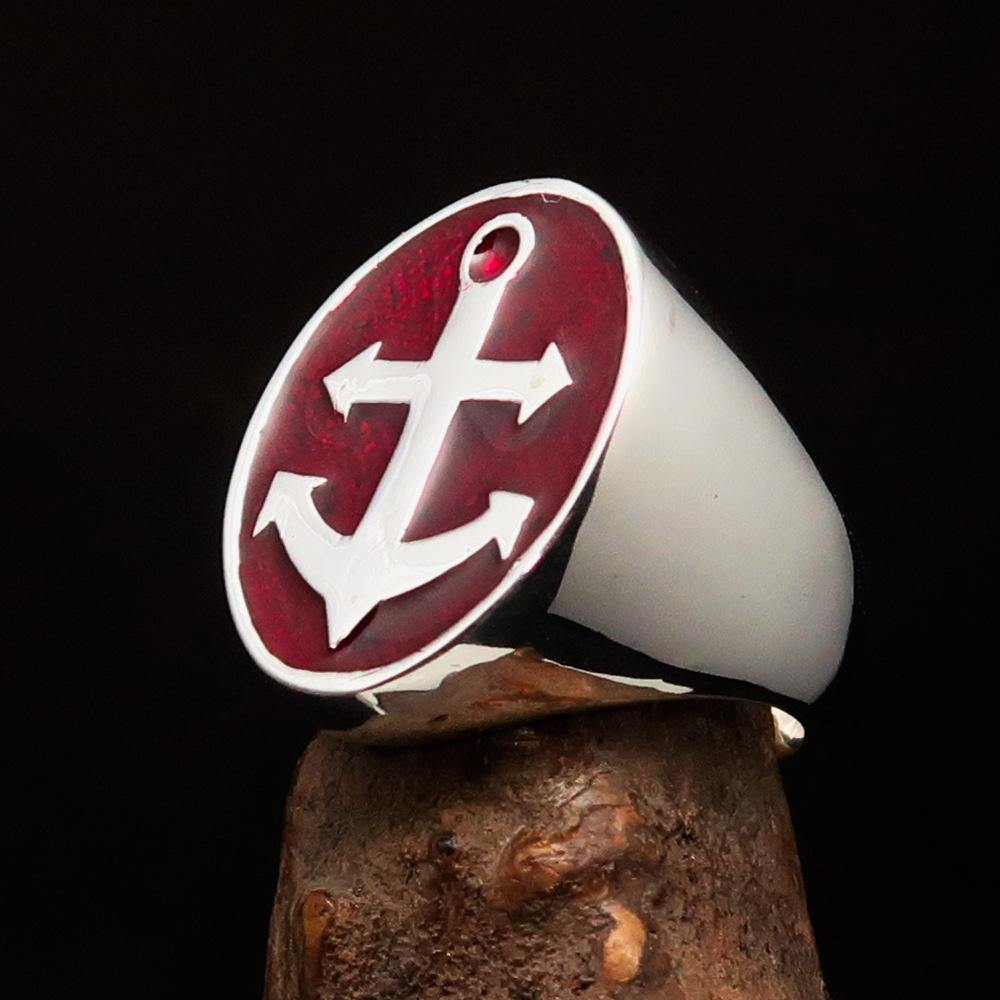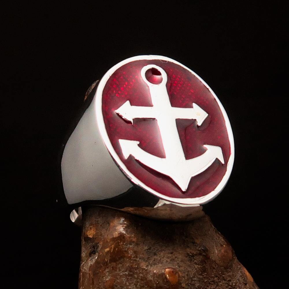 Introducing the Perfectly Crafted Men's Sailor Ring Big Anchor in Sterling Silver, a stunning piece of jewelry that combines elegance and nautical charm. This ring is designed for those who appreciate quality craftsmanship and unique style. Made from solid sterling silver, it features a high-polished finish that enhances its beauty and durability. The striking big anchor design is complemented by vibrant blue enamel, making it a standout accessory for any occasion.