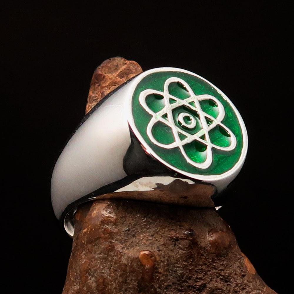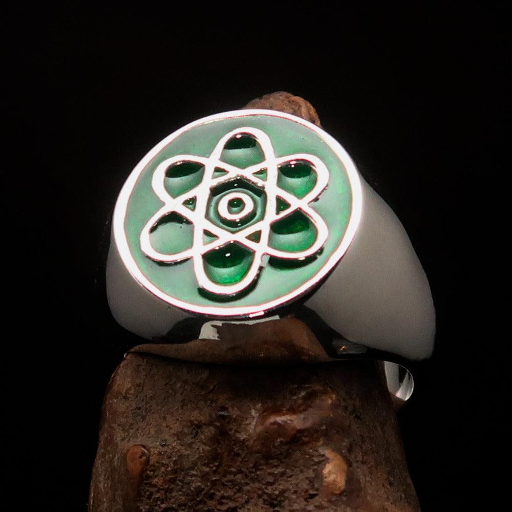 Introducing the Perfectly Crafted Men's Teacher Ring featuring an Atom Symbol, designed for those who appreciate both style and significance. Made from solid sterling silver, this ring is not only a fashion statement but also a representation of knowledge and science, making it an ideal gift for educators or science enthusiasts.