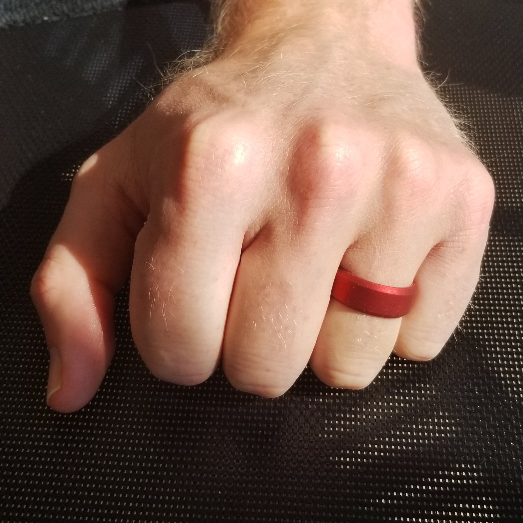 In summary, the Satin Red Bevel Edge Breathable Silicone Ring is an exceptional choice for those seeking a comfortable, stylish, and practical ring. With its unique design, high-quality materials, and moisture-wicking properties, this ring is perfect for everyday wear and various activities. Experience the difference of a silicone ring that prioritizes your comfort without compromising on style.