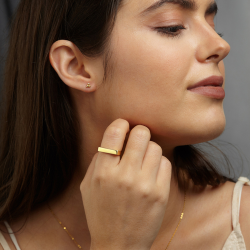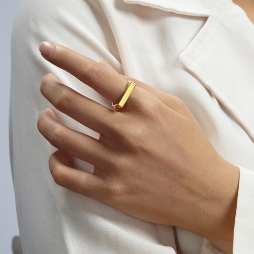 Timeless and minimal signet ring made of gold plated 18K 925 sterling silver is suitable to wear individually or combine with other stacking minimalist rings. Effortlessly stunning.
