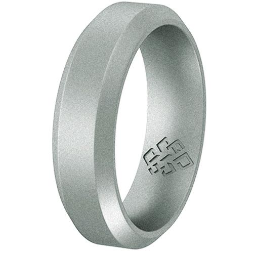 Smooth Silver Bevel Edge Silicone Ring showcasing its sleek design and breathable features, suitable for both men and women.