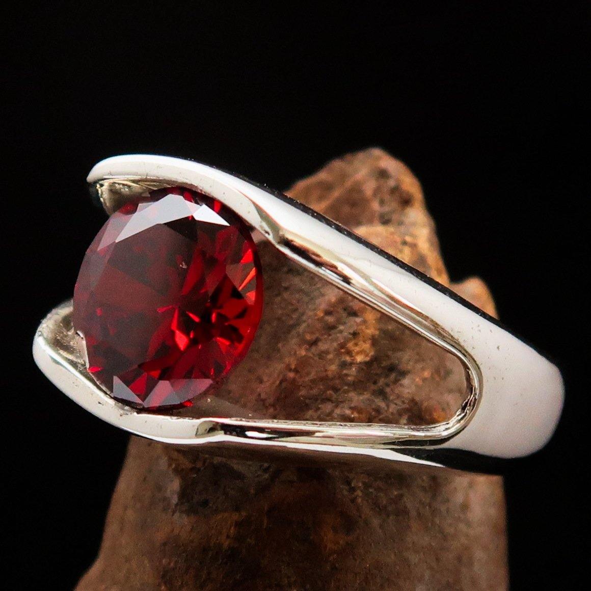 Introducing our Smoothly Crafted Sterling Silver Men's Solitaire Ring, a perfect blend of elegance and style. This exquisite ring features a stunning red Cubic Zirconia, which adds a pop of color and sophistication to any outfit. Made from solid sterling silver, this ring is not only beautiful but also durable, ensuring it will last for years to come.