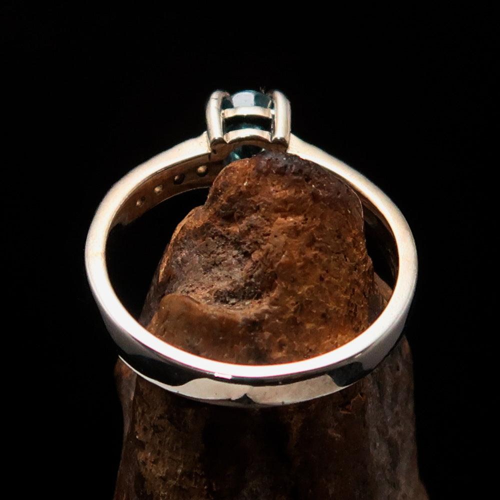 Sterling Silver Solitaire Band Ring featuring an oval cut Blue Zircon and 8 sparkling CZ stones, hallmarked 925.