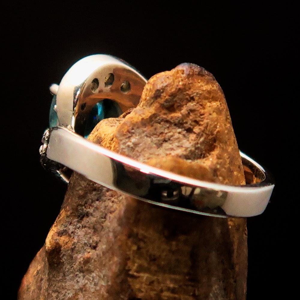 Dropship Sterling Silver Solitaire Band Ring with oval Cut Blue Zircon and 14