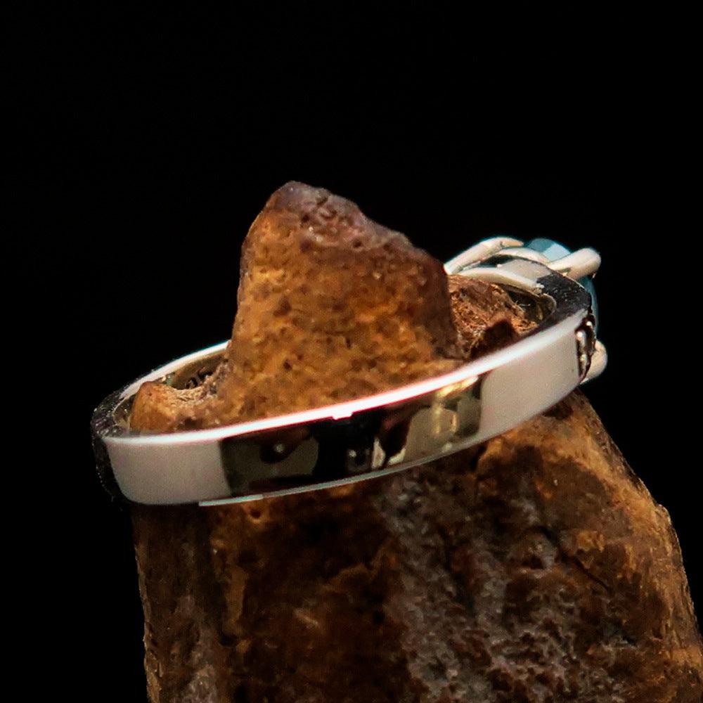 The ring has a comfortable width of 6 mm along the finger, providing a perfect balance between style and wearability. It is designed in a US Size 5.5, making it an ideal fit for many. The dimensions of the Blue Zircon are 6 mm x 5 mm, allowing it to stand out without being overwhelming. This size is perfect for those who prefer a subtle yet striking piece of jewelry.