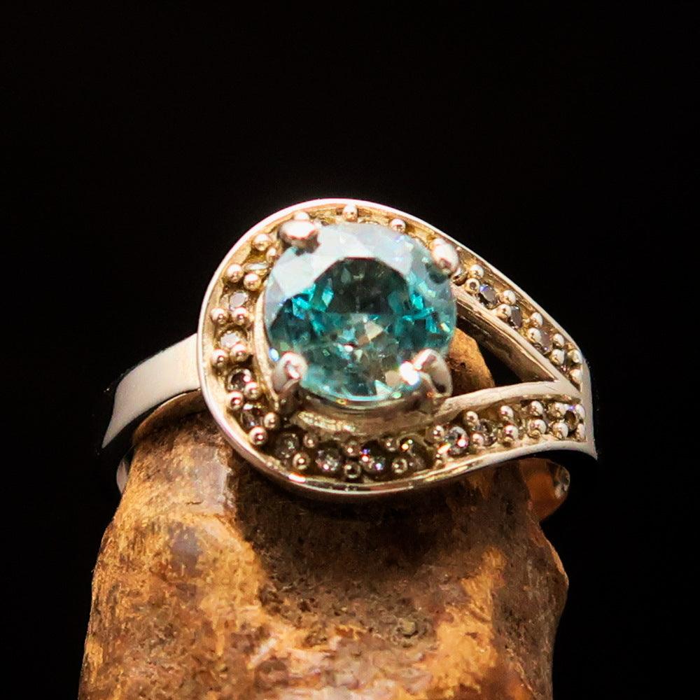 Elevate your jewelry collection with this stunning Sterling Silver Solitaire Band Ring featuring a round cut Blue Zircon. Its exquisite design, quality craftsmanship, and beautiful stones make it a must-have accessory for anyone who appreciates fine jewelry.