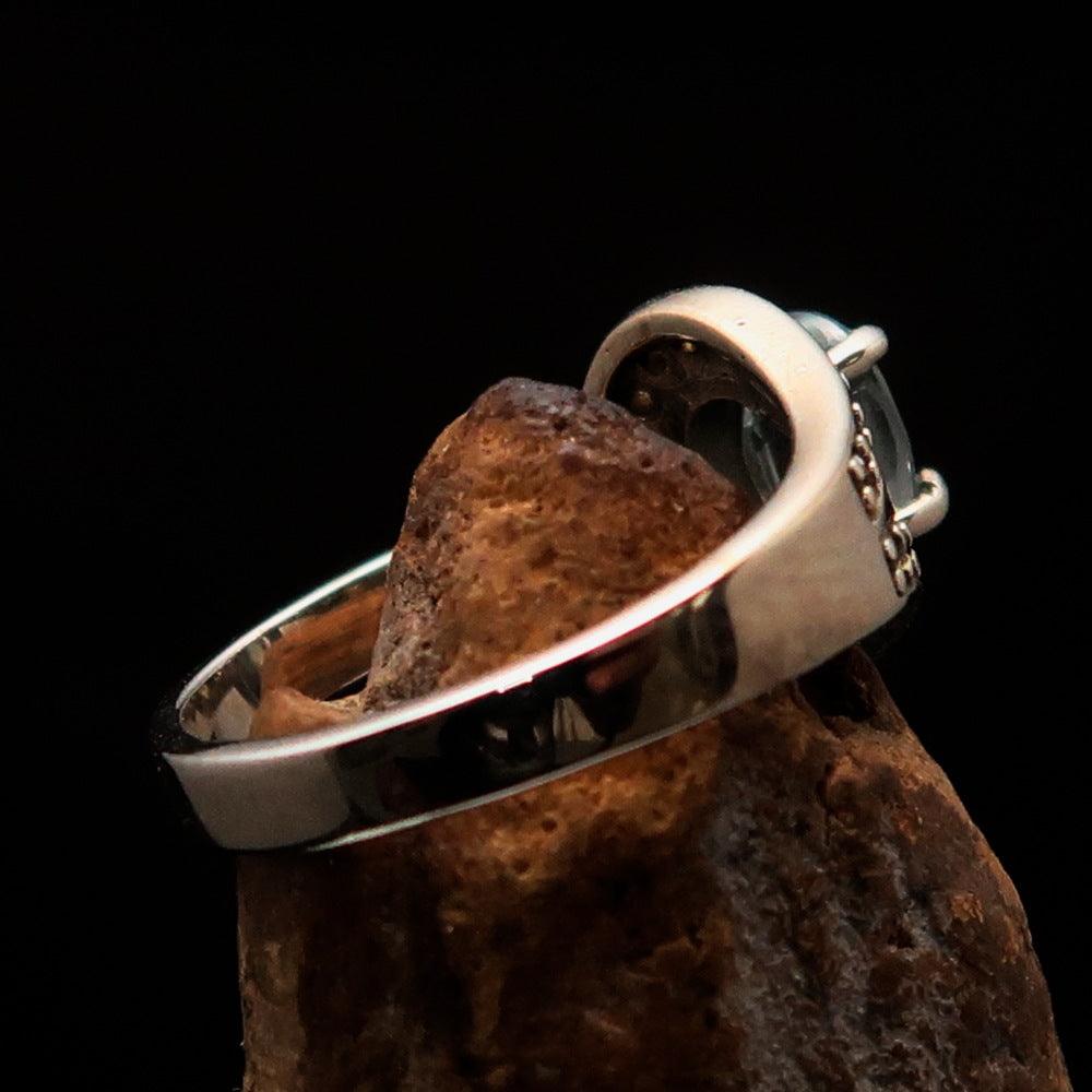Dropship Sterling Silver Solitaire Loop Ring with oval Cut Blue Zircon and 21