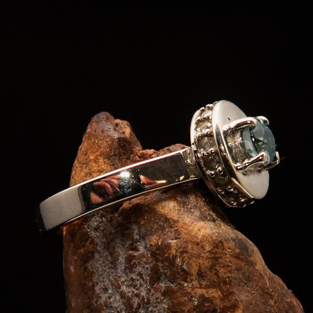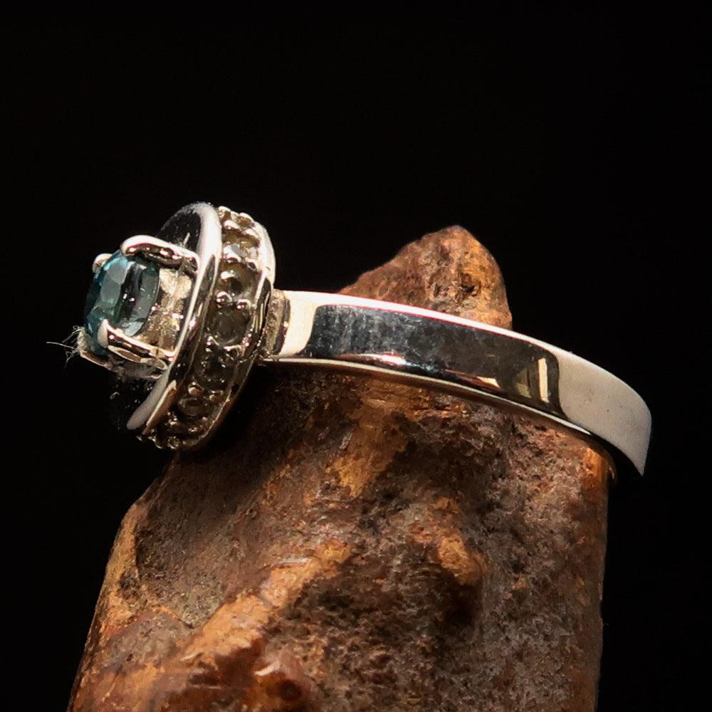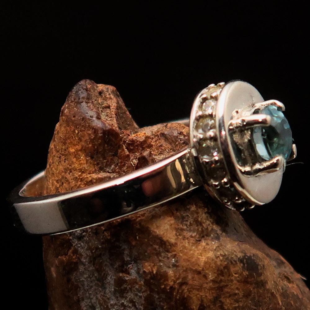 Introducing our exquisite Sterling Silver Solitaire Ring, a stunning piece of jewelry that combines elegance and sophistication. This ring features a captivating oval cut blue Zircon, which is known for its vibrant color and brilliance. The addition of 15 sparkling white cubic zirconia (CZ) stones enhances its beauty, making it a perfect accessory for any occasion.