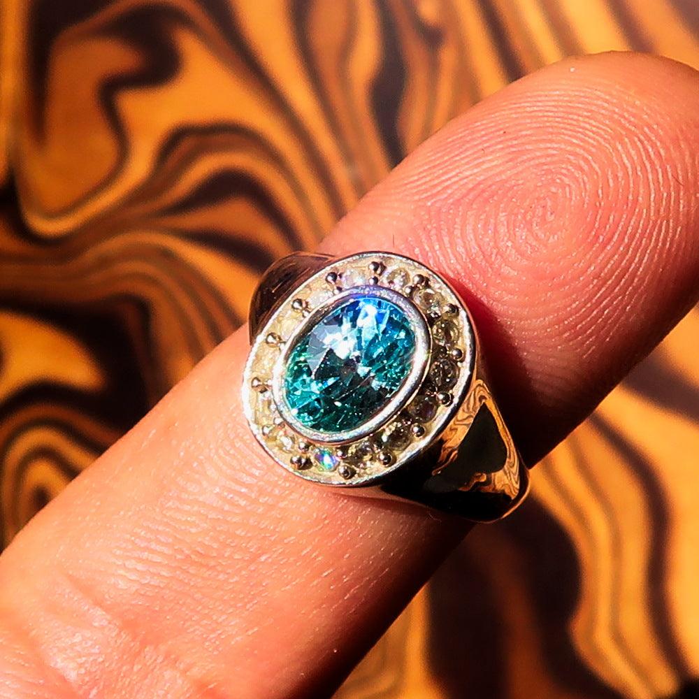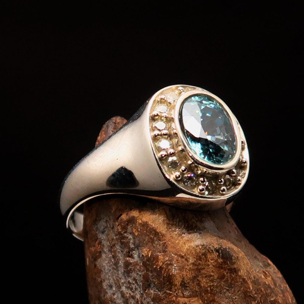Blue Zircon is a popular gemstone known for its stunning blue hues and exceptional brilliance. It is often compared to blue topaz and aquamarine but stands out due to its unique fire and sparkle. This gemstone is believed to bring peace and tranquility to its wearer, making it not only a beautiful accessory but also a meaningful one. The combination of blue Zircon and CZ stones in this ring creates a captivating look that is sure to impress.