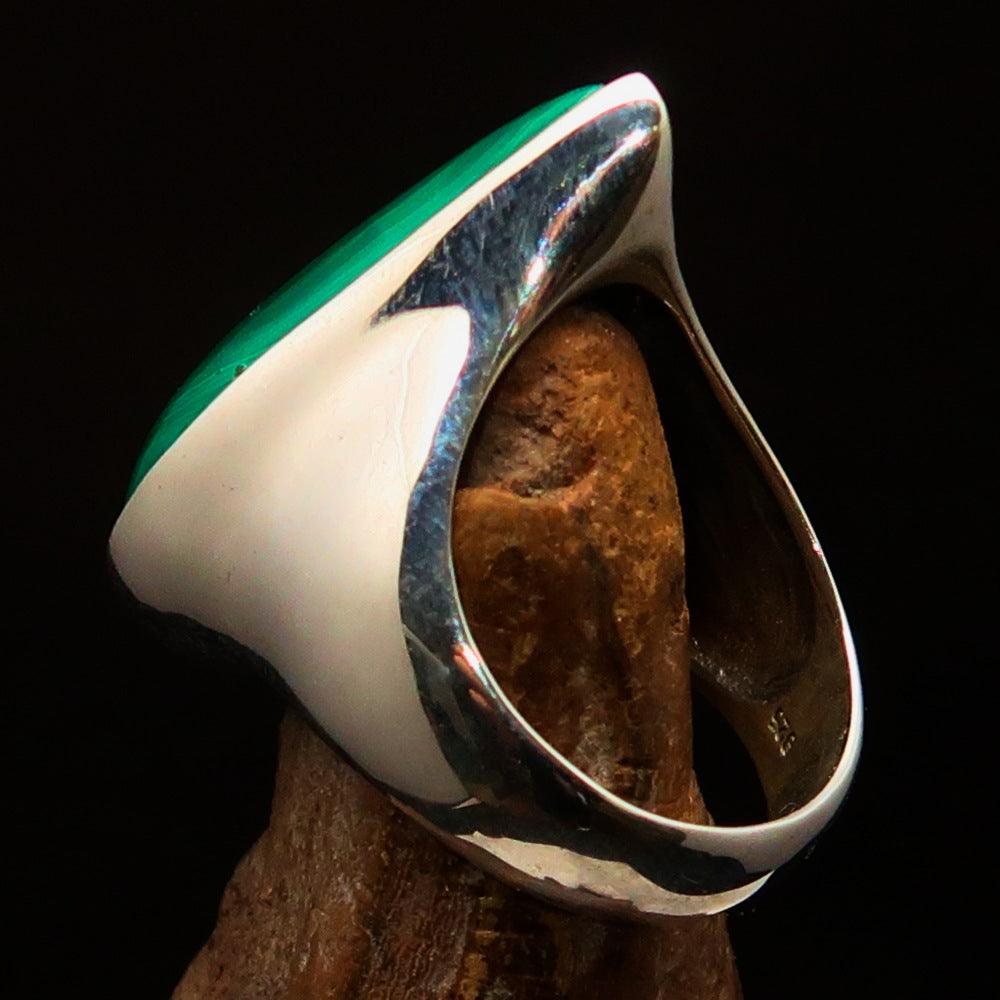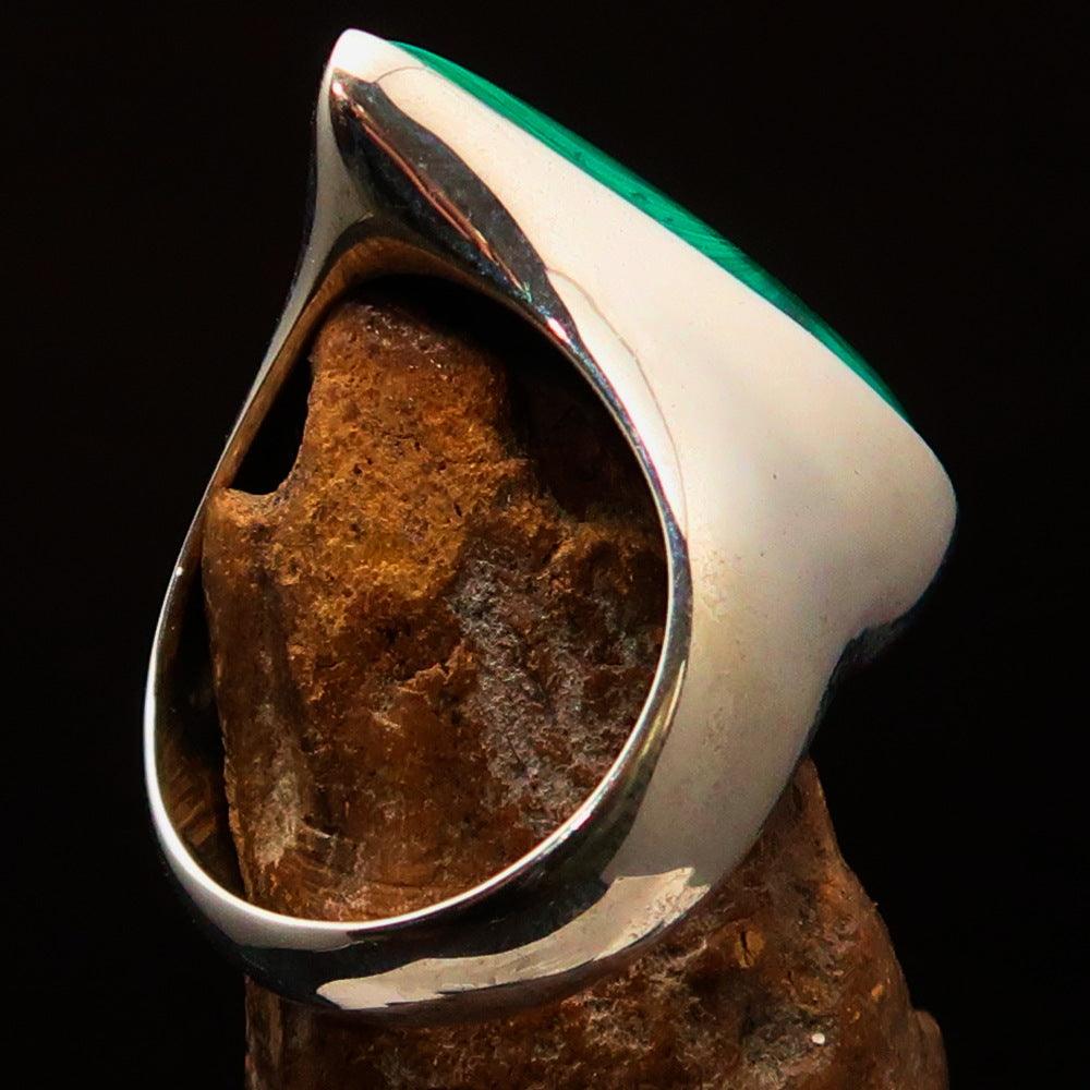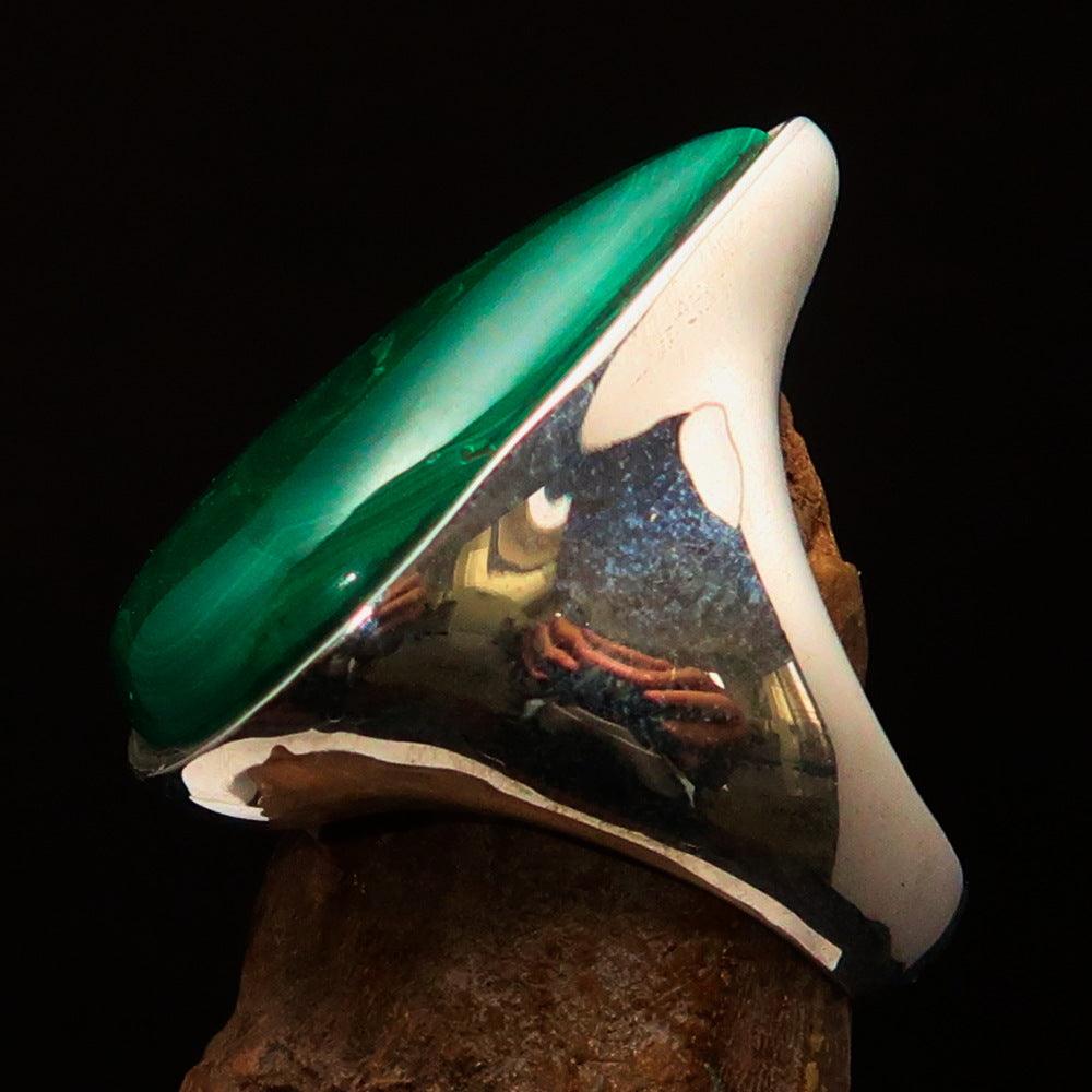 Crafted from high-quality sterling silver, this ring is hallmarked 925, ensuring its authenticity and durability. The meticulous attention to detail in the design and finish reflects the craftsmanship that goes into creating each piece. The mirror polish not only adds a luxurious shine but also complements the rich green hues of the malachite, making it a standout piece in any jewelry collection.