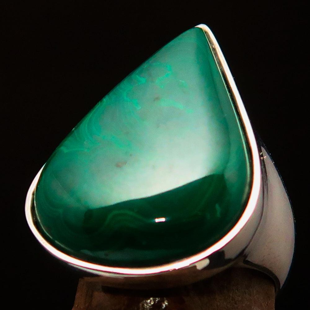 Dropship Tear shaped Mirror polished Sterling Silver Ring Green Malachite -