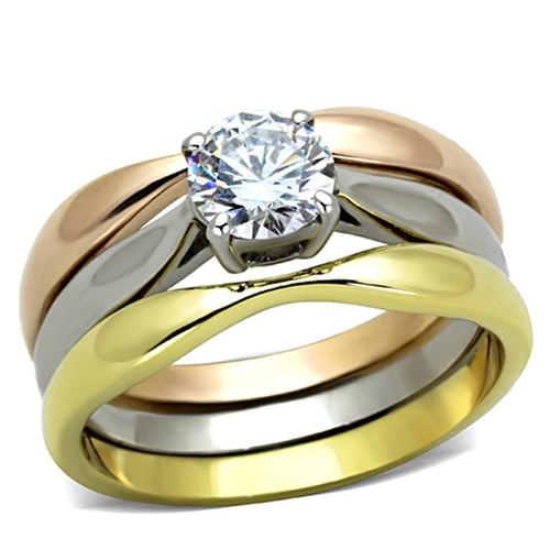 The TK1278 Three Tone Stainless Steel Ring is a stunning piece of jewelry that combines elegance and modern design. Crafted from high-quality stainless steel, this ring features a unique three-tone finish that includes IP Gold, IP Rose Gold, and a high polished surface. This combination not only enhances its aesthetic appeal but also ensures durability and resistance to tarnishing.