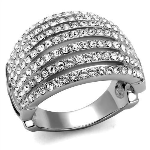 The center stone of the TK2901 ring is a top-grade crystal that is clear and brilliantly cut. This crystal is designed to catch the light beautifully, making it an eye-catching addition to your jewelry collection. Whether you're dressing up for a special occasion or adding a touch of elegance to your everyday outfit, this ring is sure to impress.