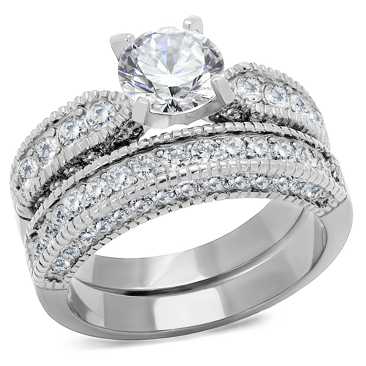 Ordering your Women 2-Piece Stainless Steel Wedding Ring Set is simple. Just provide the ring sizes for both the engagement ring and the wedding band. With our affordable pricing, you can find unique rings for her without breaking the bank. We believe that everyone deserves beautiful jewelry, and our bridal set is designed to offer both style and value.