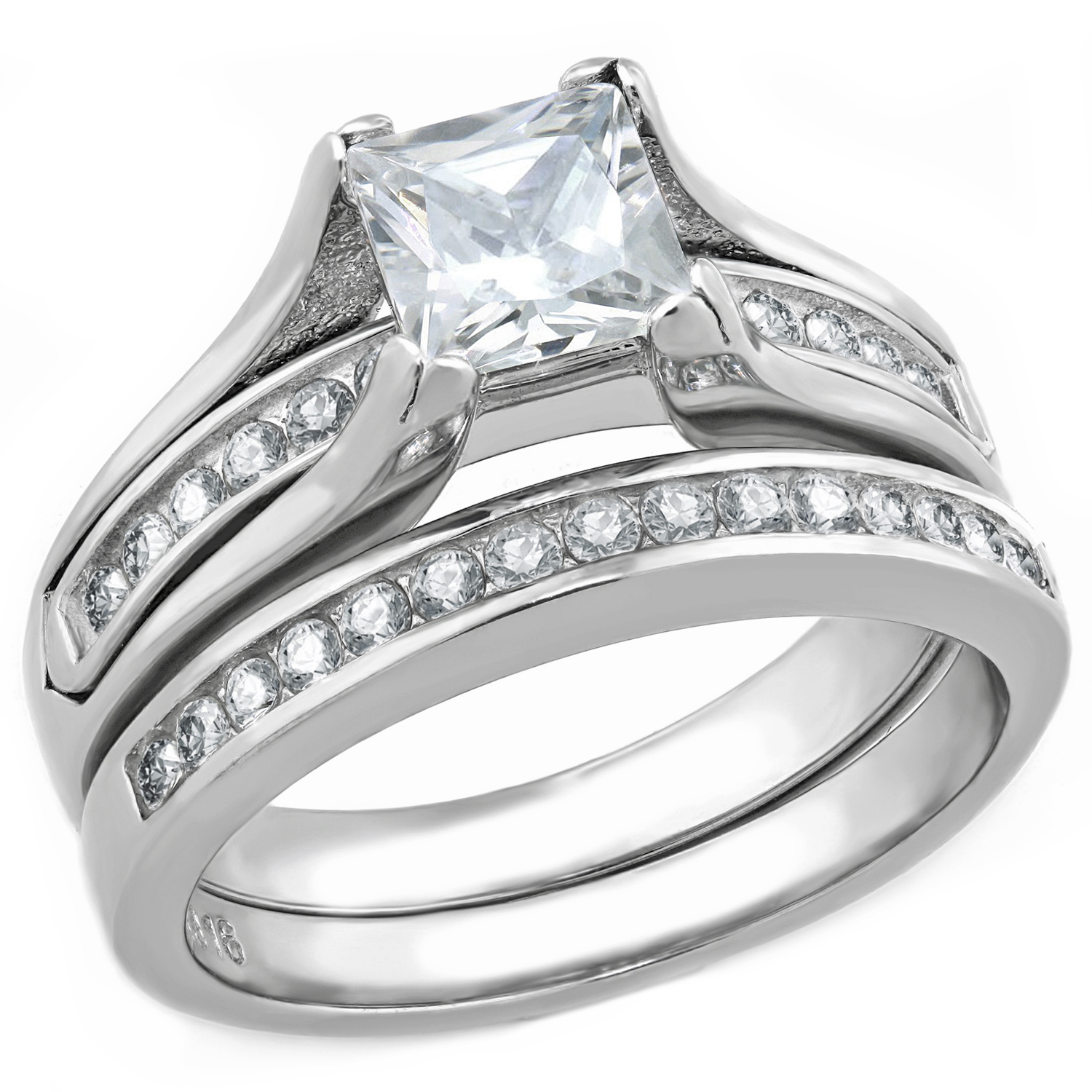 Introducing our exquisite Women Stainless Steel Bridal Sets Wedding Rings, designed for the modern bride who values both elegance and durability. Crafted from high-quality 316L grade stainless steel, these wedding rings are not only stunning but also built to last. The set includes a beautiful engagement ring and a matching wedding band, both adorned with AAA grade cubic zirconia that sparkles brilliantly. With a total carat weight of 2.88 carats, this bridal set is sure to make a statement on your special day.