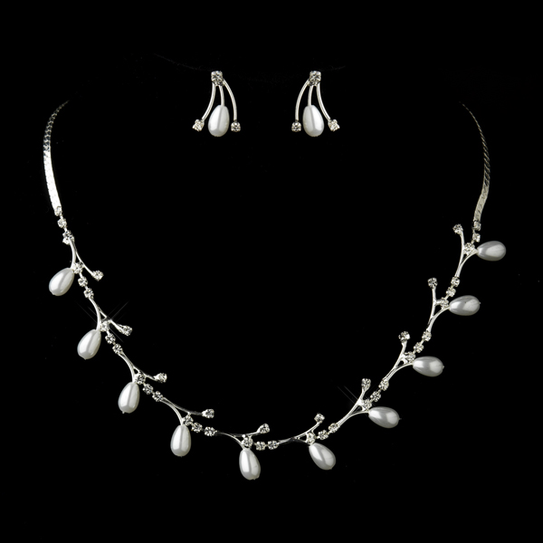 The necklace measures approximately 17 inches long and is secured with a lobster claw closure, providing both comfort and security. The earrings are designed with a post back closure and feature a drop of approximately 0.85 inches, with a width of 0.65 inches, making them the perfect size to catch the light without overwhelming your bridal look. The teardrop pearl design adds a romantic touch, enhancing the overall aesthetic of the jewelry set.