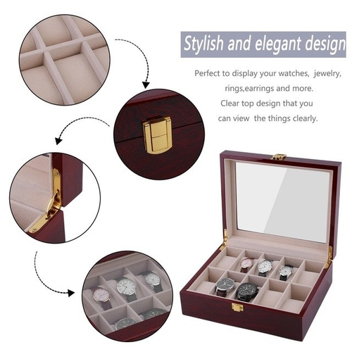 Dropship 10 Grids Red/Black Wooden Watches Box Case Watch