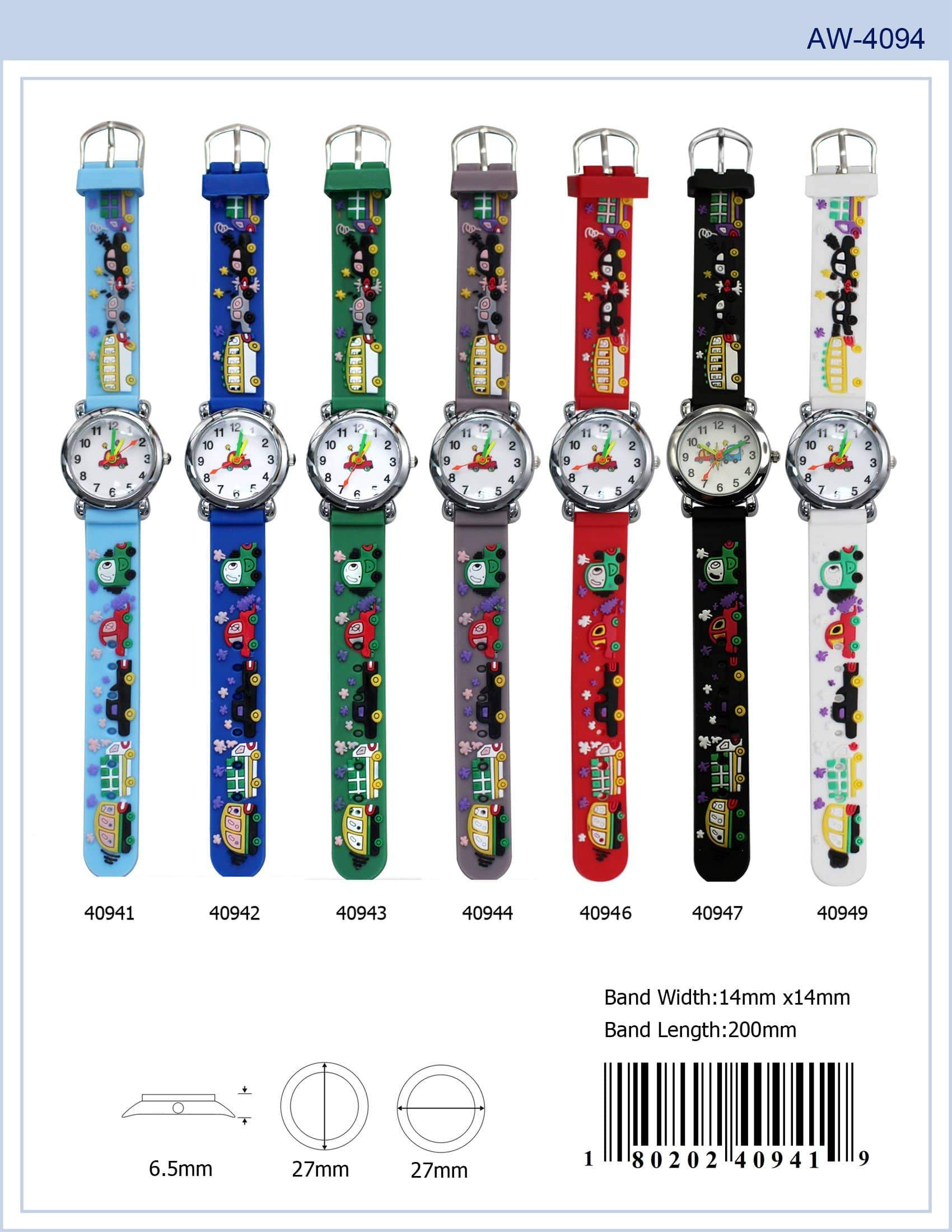 Colorful 4094 Kids Watch featuring a playful car design with a soft rubber band and easy-to-read dial.