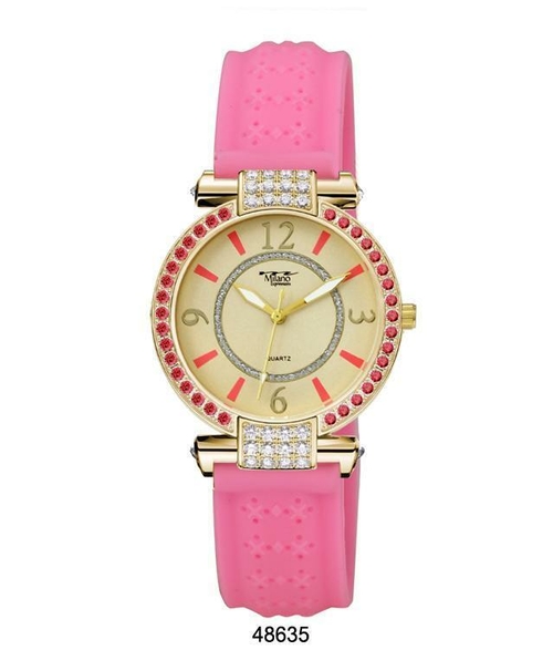 The 4863 Silicon Band Watch is a perfect accessory for the modern woman who values both style and comfort. This watch is designed to complement your lifestyle, whether you're dressing up for a special occasion or looking for something chic for everyday wear. With its lush silicon band and sparkling stone-covered case, this watch is not just a timepiece; it's a statement piece that enhances any outfit.