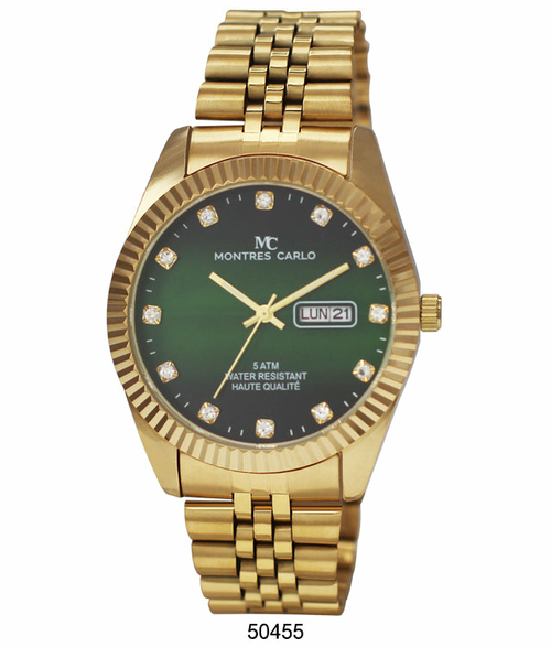 5045 Metal Band Day and Date Watch featuring a slim design, fluted bezel, and Japanese movement.