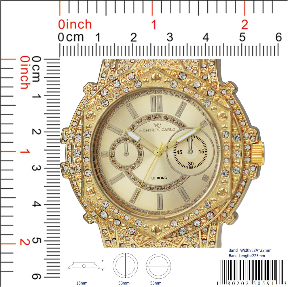 Equipped with an analog quartz movement, the 5059 Bullet Band Watch ensures accurate timekeeping, so you never miss a beat. The watch is manufactured by Montres Carlo, a brand known for its commitment to quality and craftsmanship. The case size measures 50MM, providing a bold presence on the wrist, while the band length of 225MM accommodates a variety of wrist sizes.