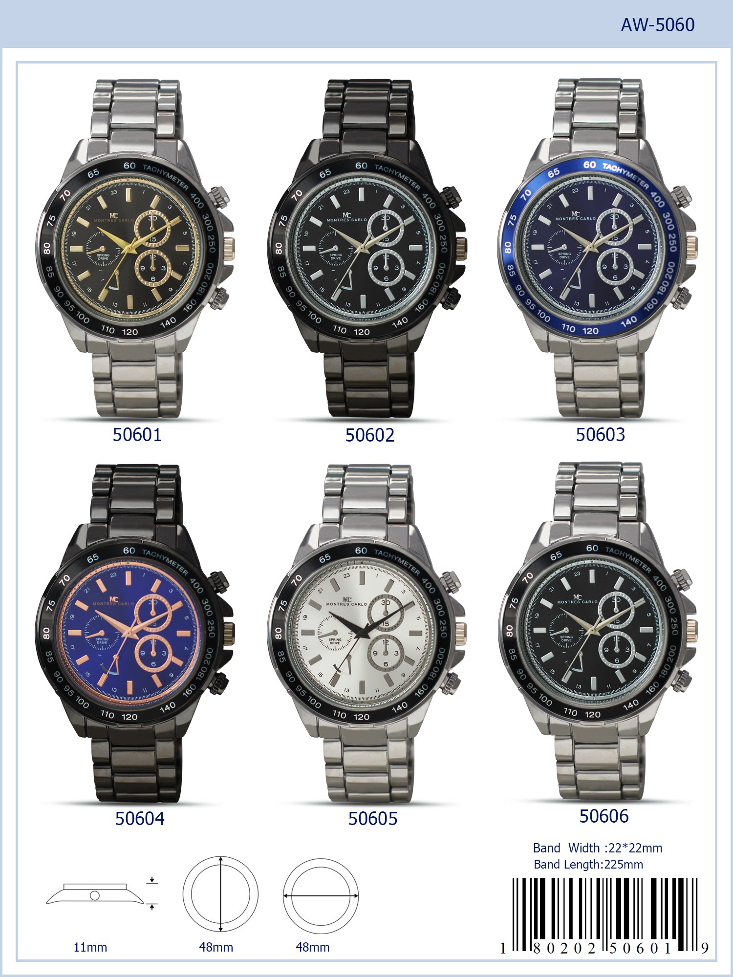 The 5060 Metal Band Watch from the Montres Carlo men's collection is a remarkable timepiece designed for those who appreciate both style and functionality. This watch is not just an accessory; it is a statement of elegance and durability, making it perfect for daily wear. Crafted with a gorgeous metal band, this watch is built to withstand the rigors of an active lifestyle while maintaining a sophisticated appearance.