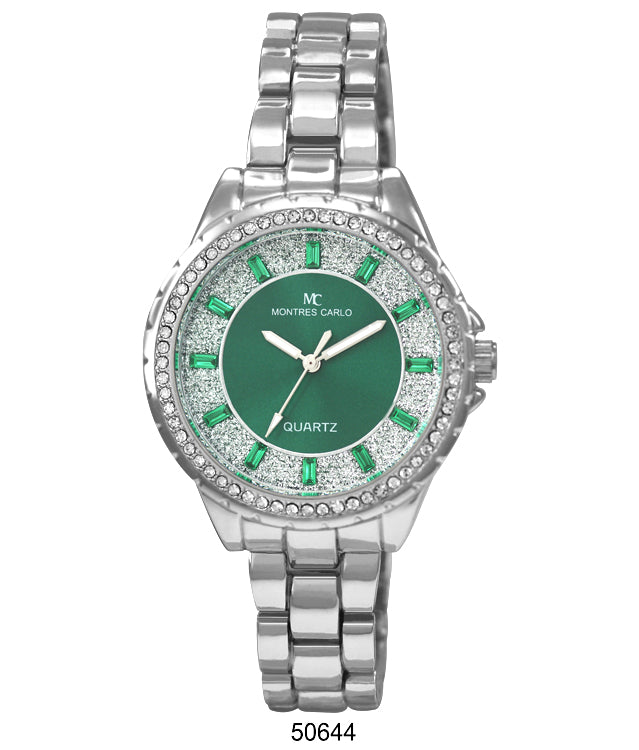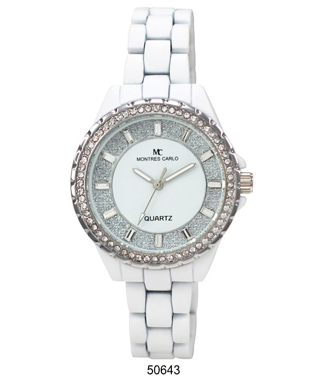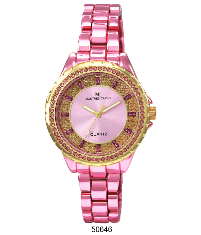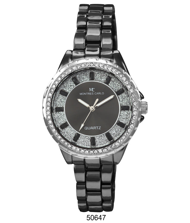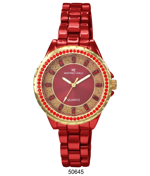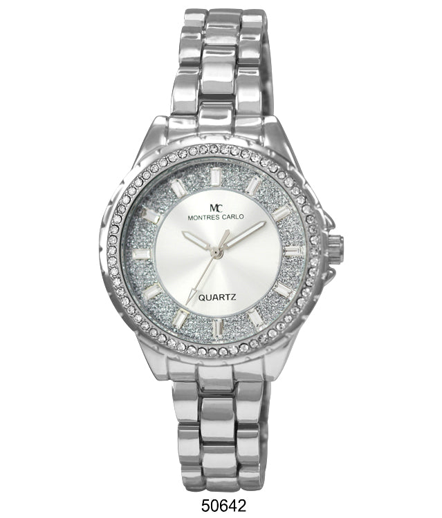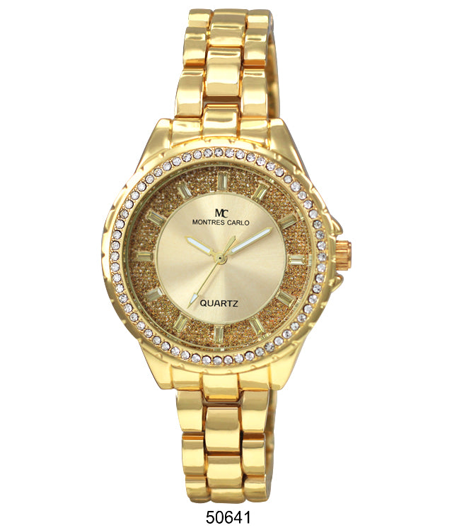 Featuring a classic presidential bracelet, the 5064 Metal Band Watch stands out with its sophisticated design. The metal alloy construction ensures durability while maintaining a lightweight feel on the wrist. The watch is adorned with a bezel lined with sparkling stones, adding a touch of glamour that makes it suitable for both casual and formal settings.