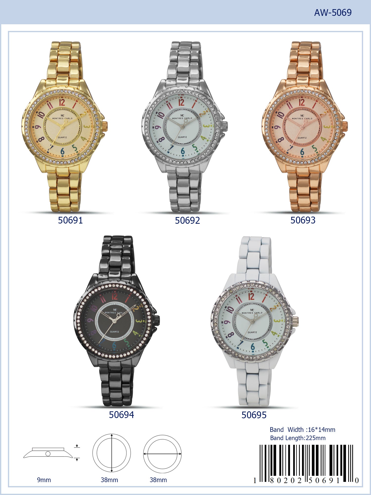 The 5069 Metal Band Watch is the perfect blend of style and functionality, designed for the modern woman who values both elegance and comfort. This exquisite timepiece from the renowned brand Montres Carlo features a classic case design that complements any outfit, making it an essential accessory for both casual and formal occasions.