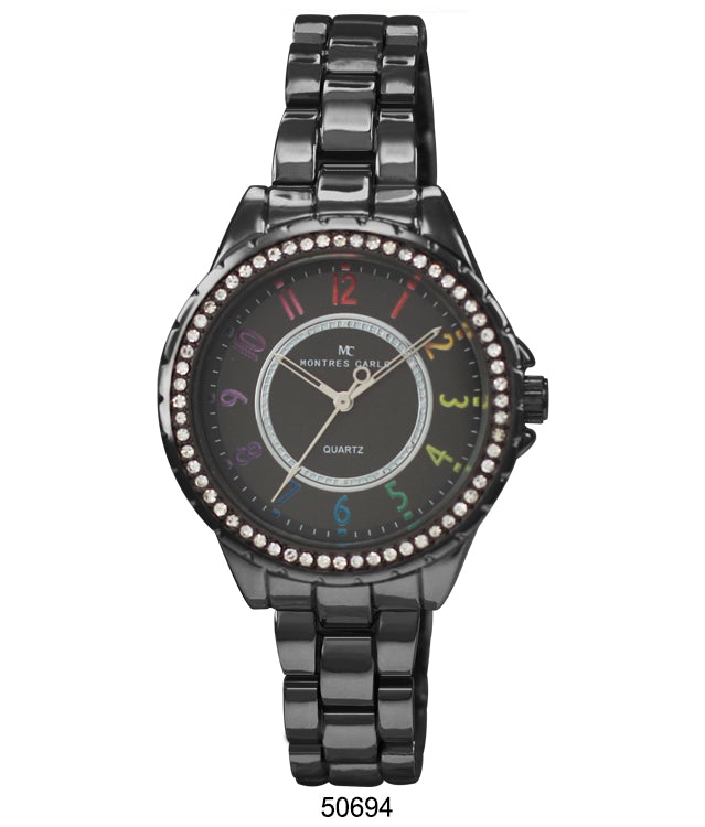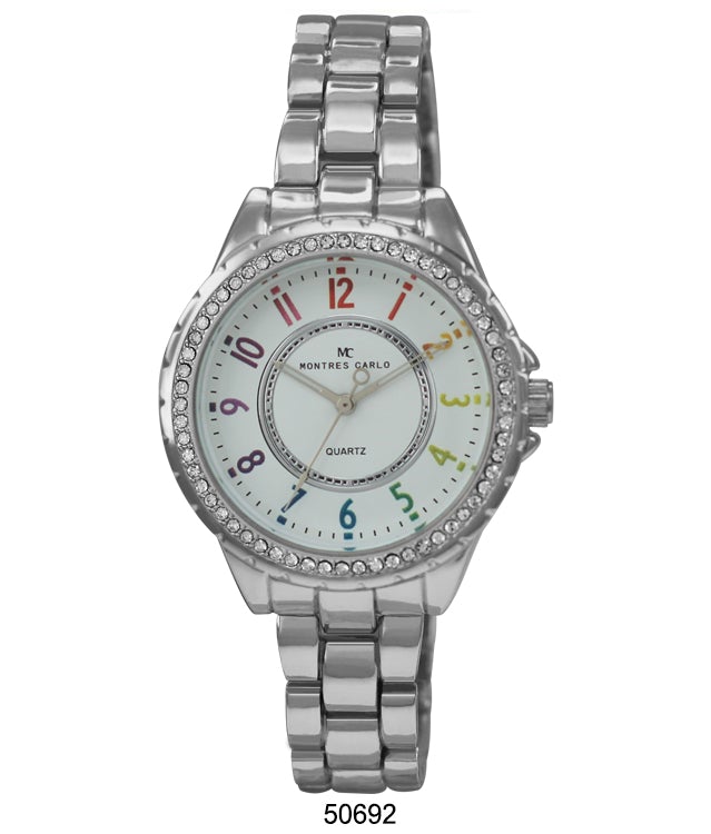 5069 Metal Band Watch featuring a classic design with sparkling stone bezel and lightweight metal band.
