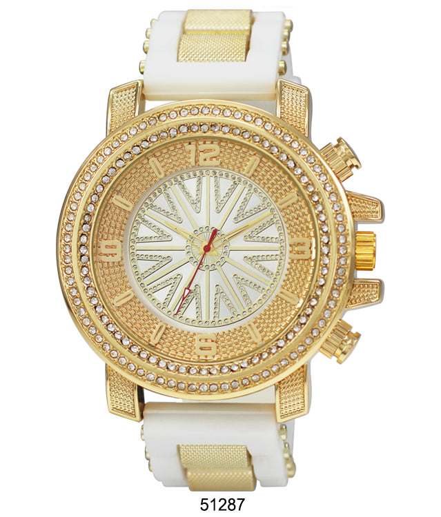 The case of the 5128 Bullet Band Watch is covered in sparkling stones, adding a touch of glamour to its overall appearance. This unique feature makes it a great accessory for both casual and formal occasions. The shimmering stones catch the light beautifully, ensuring that you stand out wherever you go.