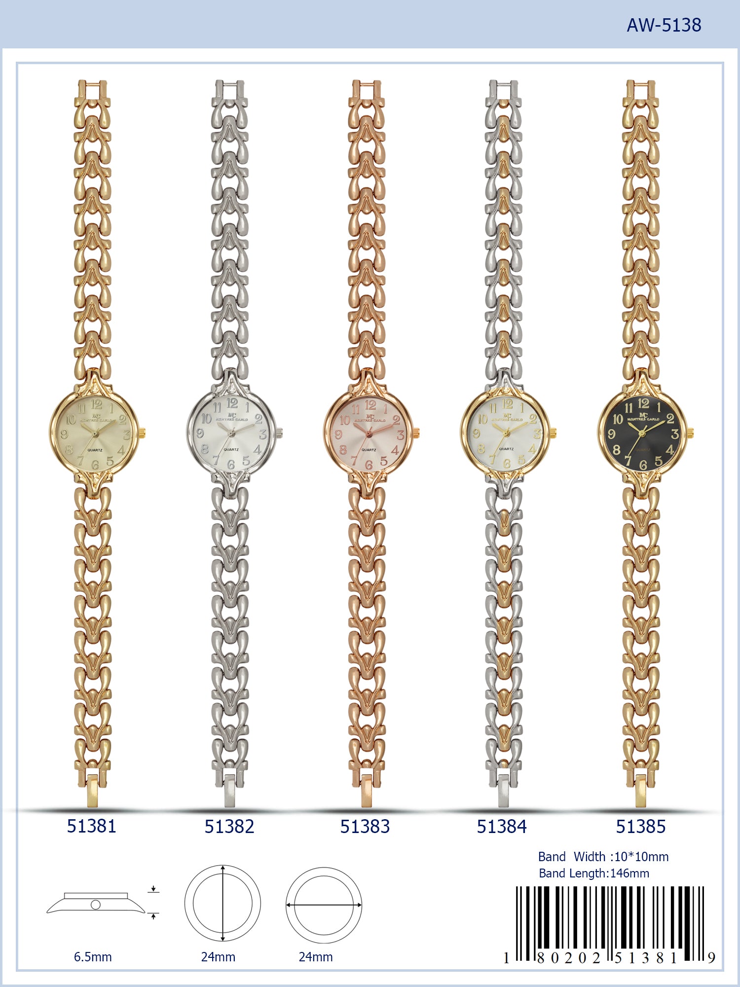 The 5138 Bracelet Watch is a stunning addition to our ladies collection, designed to keep up with the latest trends while offering both style and functionality. This watch is perfect for women who appreciate elegance and practicality in their accessories. Whether you're dressing up for a special occasion or looking for something chic for everyday wear, this bracelet watch is the ideal choice.