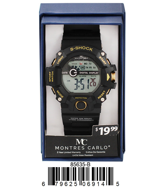 The 8563 Digital Watch from Montres Carlo is designed for those who lead an active lifestyle and require a timepiece that can keep up with their daily demands. This watch combines functionality with style, making it a perfect accessory for both casual and formal occasions.