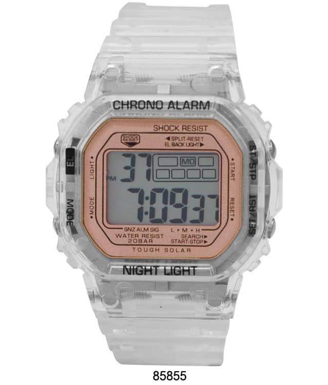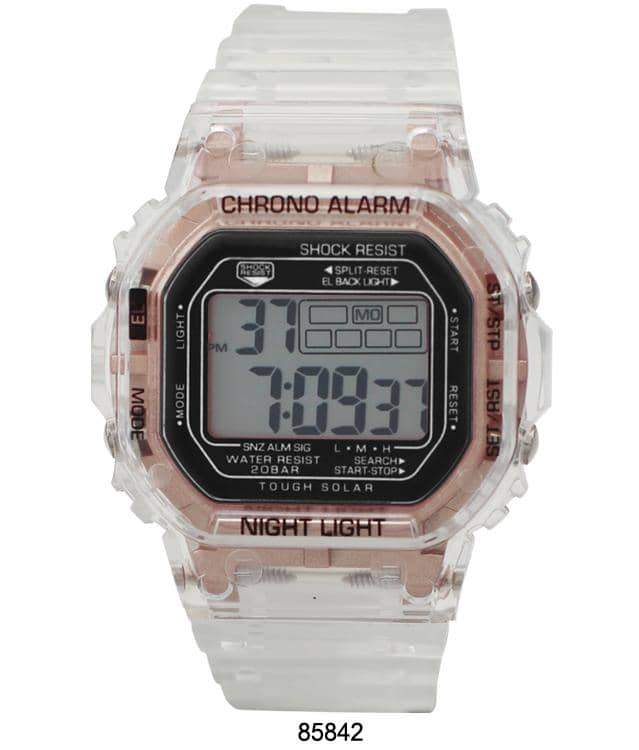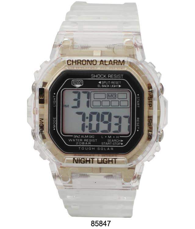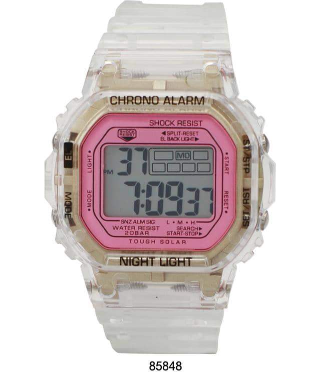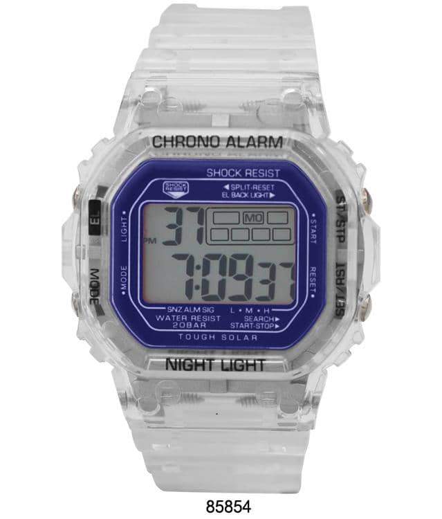 The 8584 Transparent Digital Watch is the perfect blend of style and functionality, designed for those who lead an active lifestyle. With its sleek transparent case and band, this watch not only looks great but also incorporates essential digital features to keep you on track throughout your day. Whether you're timing your workouts or setting reminders, this watch has you covered.