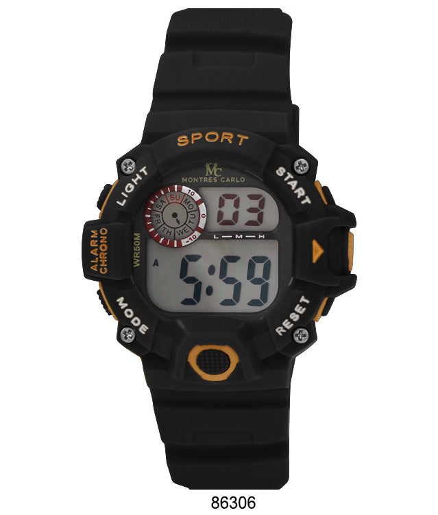 This digital watch is brought to you by Montres Carlo, a brand known for its commitment to quality and innovation in watchmaking. The 8630 Digital Watch comes with a 2-year limited warranty, giving you peace of mind with your purchase. You can trust that you are investing in a reliable timepiece that will serve you well for years to come.