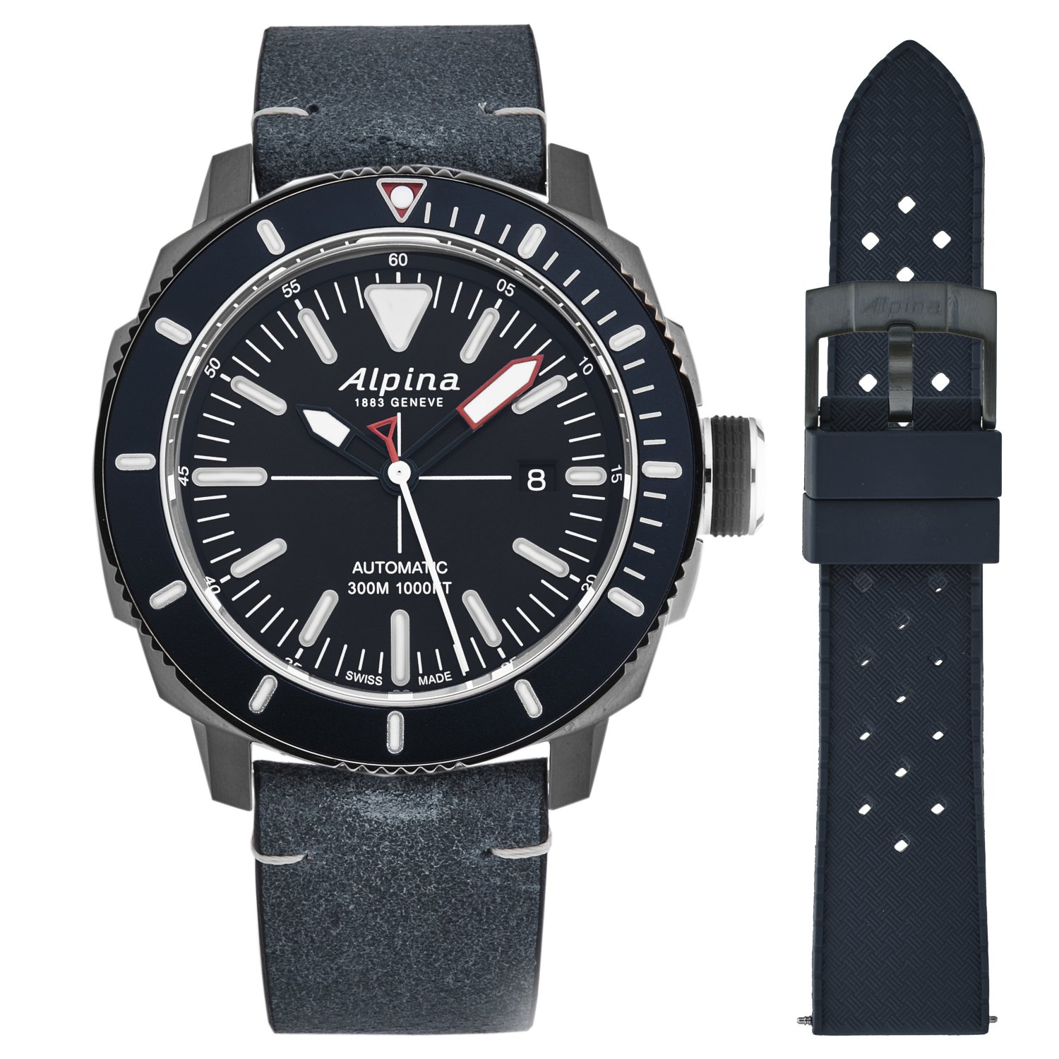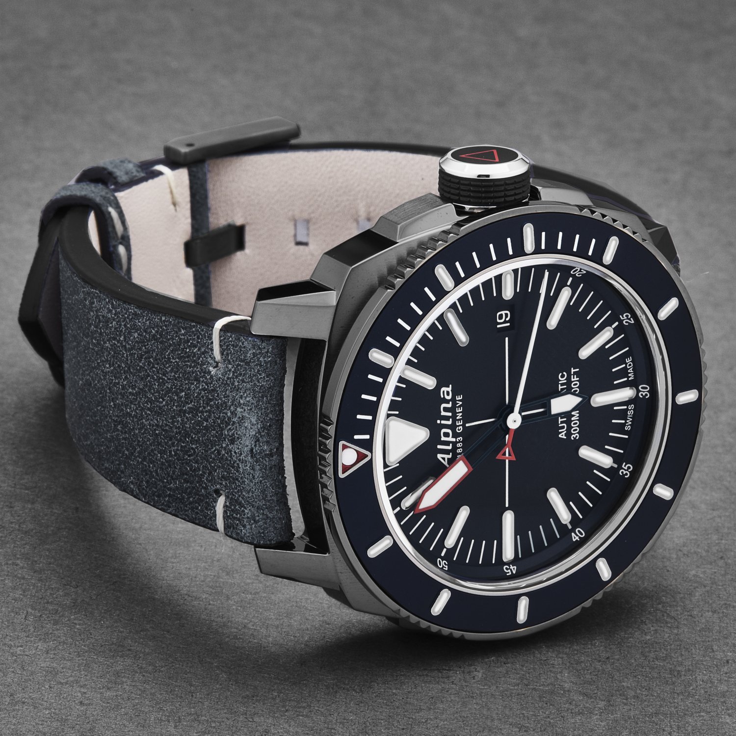 The Alpina Men's AL525LNN4TV6 'Seastrong Diver' Blue Dial Blue Leather Automatic Watch is a perfect blend of style and functionality. Designed for diving enthusiasts, this watch is not only aesthetically pleasing but also built to withstand the rigors of underwater adventures. With its striking blue dial and durable leather band, it is an ideal accessory for both casual and formal occasions.