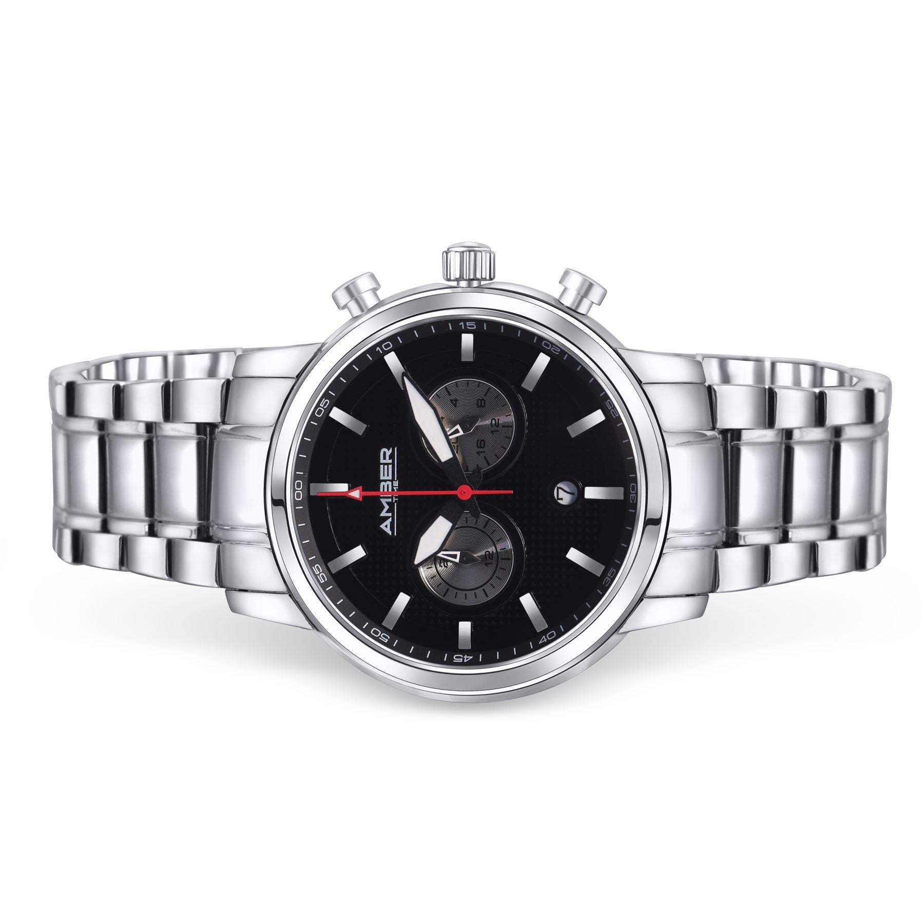 The Amber Time Men's Quartz Chronograph Watch is a perfect blend of style and functionality. With its polished finish and robust design, this watch is not only a timepiece but also a statement accessory. The 45mm stainless steel case provides durability and a modern aesthetic, making it suitable for both casual and formal occasions.