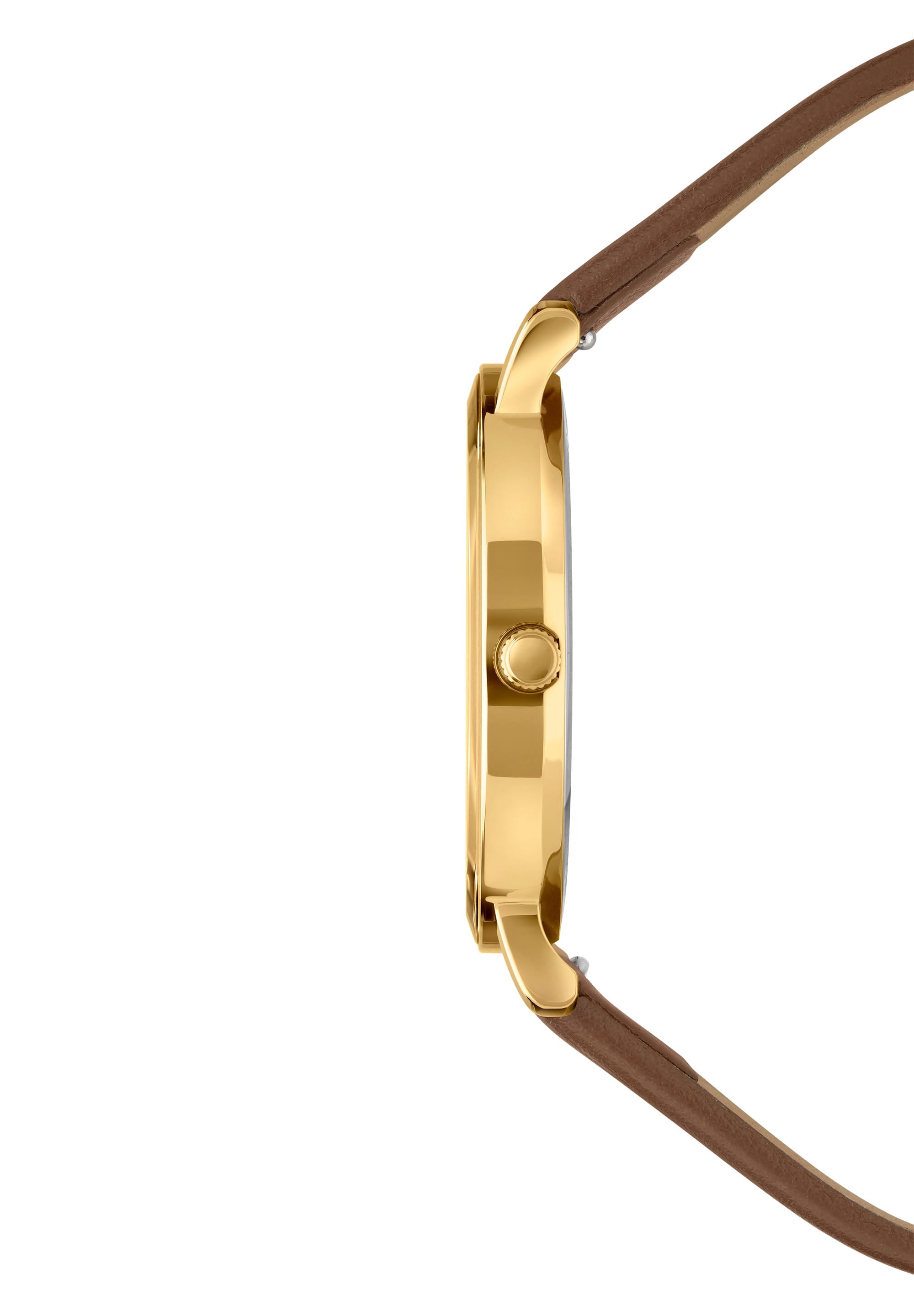 This ladies' watch is fitted with an Italian genuine leather strap in a rich brown color, providing both comfort and style. The strap has a width of 18mm and is adjustable to fit wrist circumferences ranging from 165mm to 215mm. The stainless steel buckle features a laser-engraved logo, adding a touch of sophistication to the overall design.