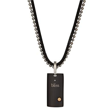 BLISS by Damiani 'Uomo' pendant featuring black stainless steel and 18K yellow gold with diamond accents, displayed on a neutral background.