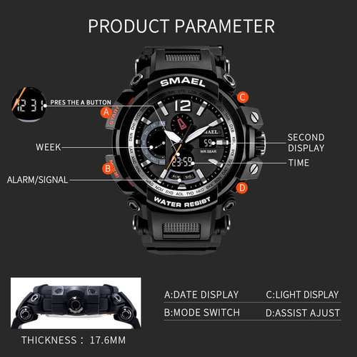• Gender: SMAEL MEN Watches Dual Time Wristwatch