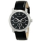 The watch features a round case made from brushed stainless steel, which not only adds to its durability but also enhances its overall elegance. The black dial is clean and easy to read, showcasing three subdials that provide additional functionality. These subdials display the 24-hour time, date, and day of the week, making it a practical choice for everyday wear.
