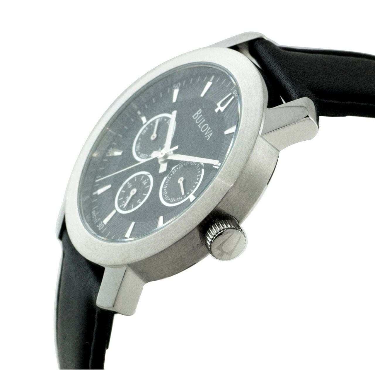 Crafted with a supple black calfskin leather strap, the Bulova 96C111 ensures comfort on the wrist while maintaining a polished look. The strap is designed to fit men's standard wrist sizes and has a width of 20 millimeters. The buckle clasp provides a secure fit, allowing you to wear it confidently throughout the day.
