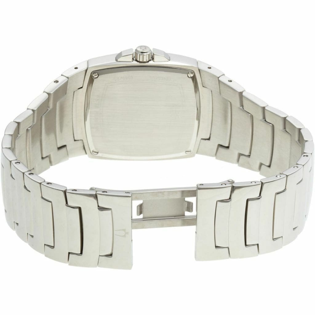 The case and bezel of the Bulova 96D108 are crafted from high-quality stainless steel, providing both durability and a sleek appearance. The stationary bezel complements the case perfectly, creating a streamlined look that is both modern and timeless. The watch has a case diameter of 35 millimeters and a thickness of 9.6 millimeters, making it a comfortable fit for most wrist sizes.