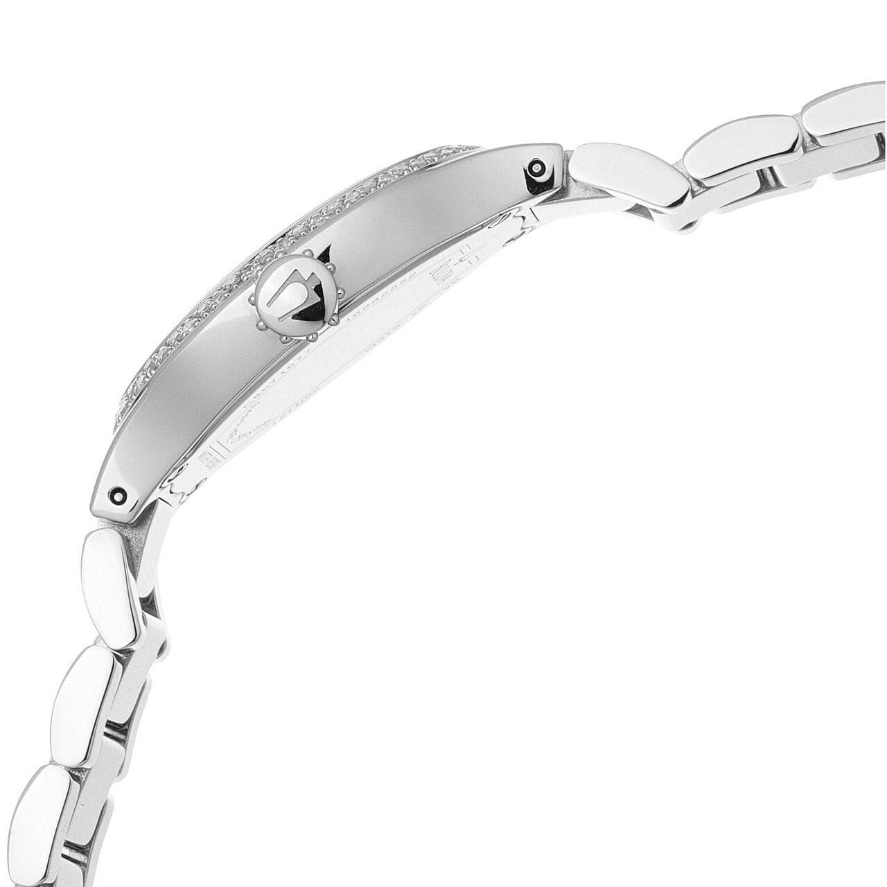 The stainless steel band is designed for comfort, featuring a deployant clasp with a double push button for secure fastening. With a band length suitable for women's standard sizing and a width of 6mm, this watch fits comfortably on the wrist, allowing for all-day wear without discomfort.